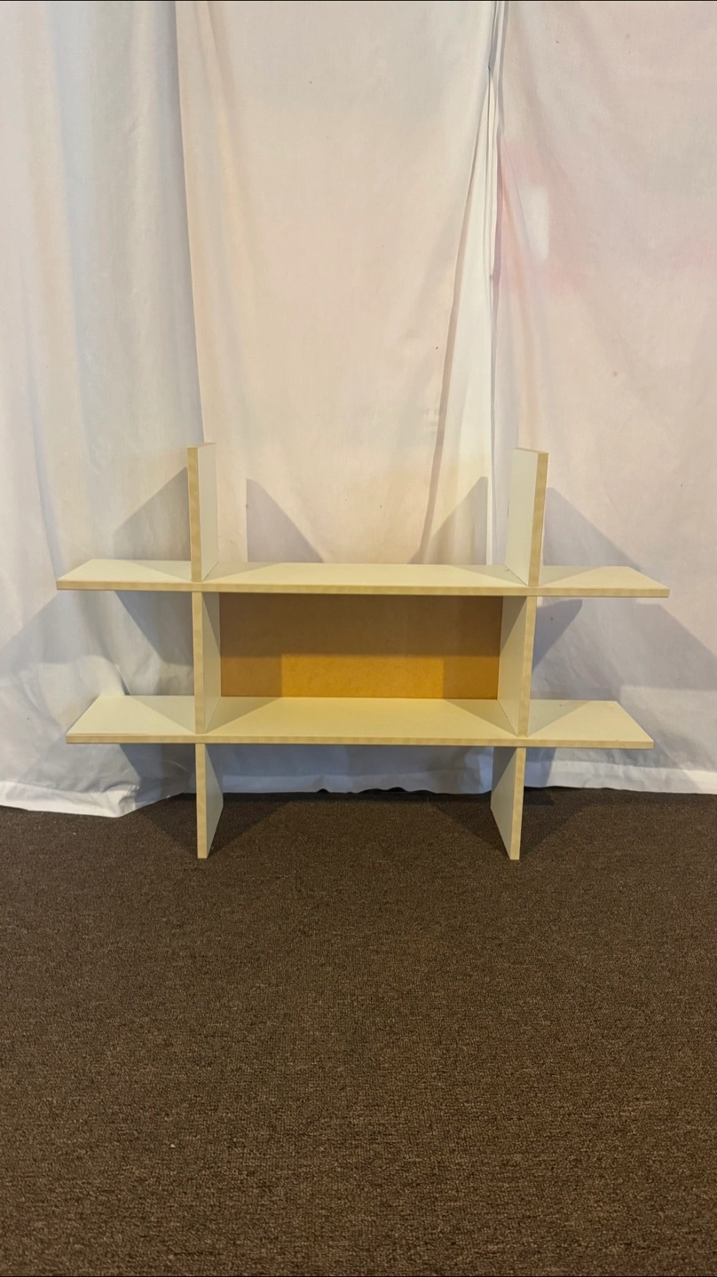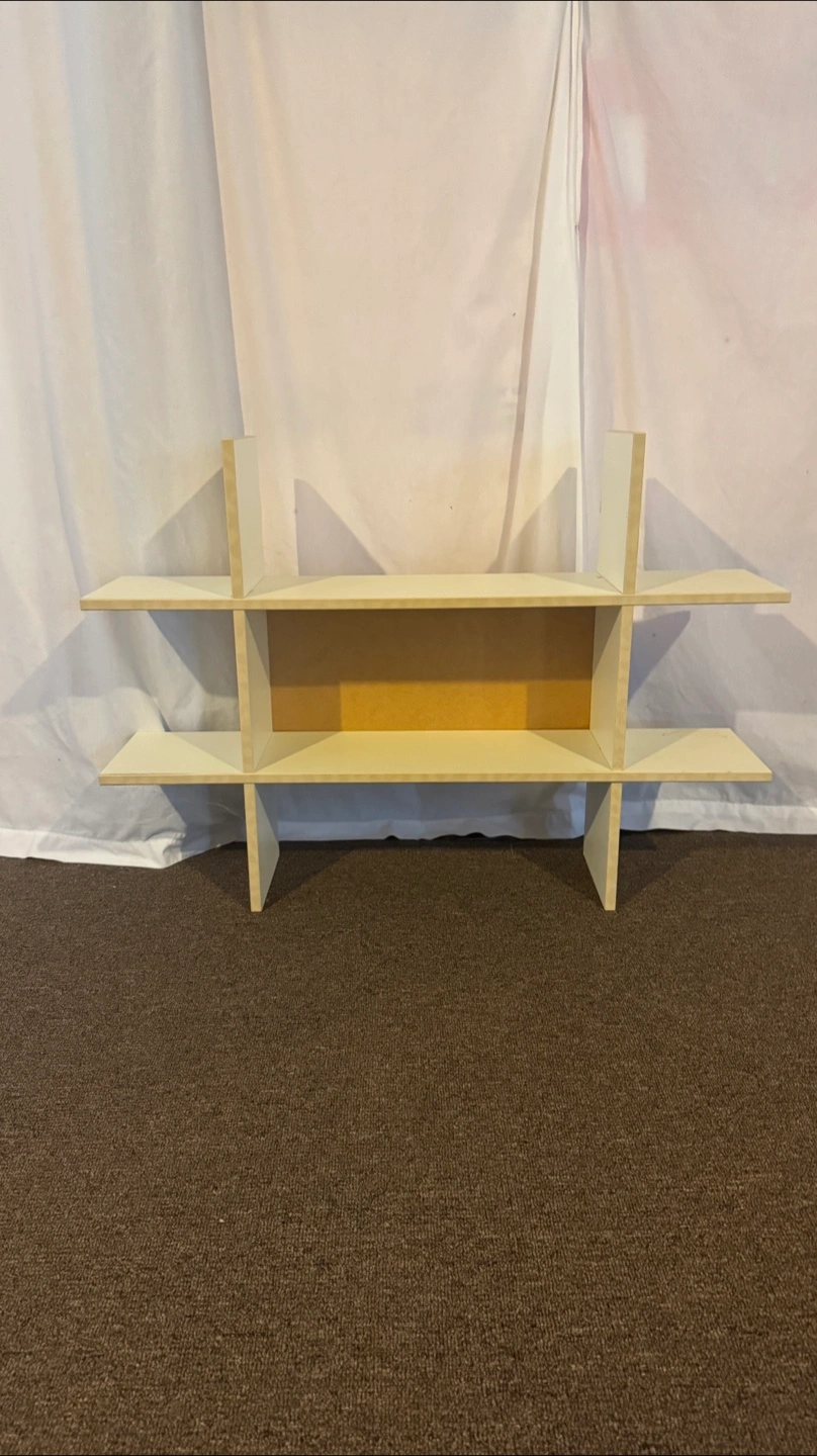 27IKEA plywood shelf Stylish off-white wall-mounted shelving unit. Two shelves, minimalist design. Great for displaying books, plants, or small décor. Easy to assemble and install.