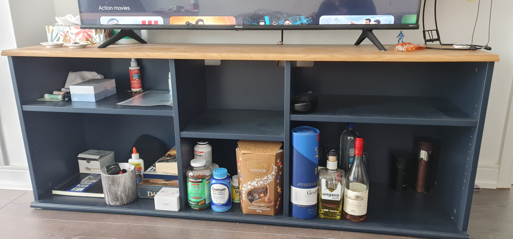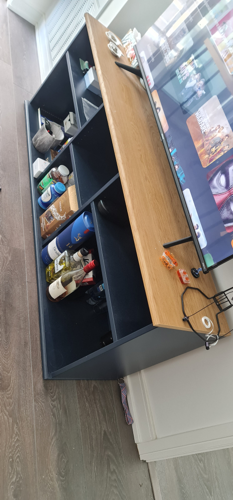 10Moving Out Sale: IKEA skruvby TV bench has traditional look with solitaire storage units that can be coordinated. This TV bench’s top panel has an oak expression and profiled edges that add a warm, natural feel to the room. bought six months back for $170