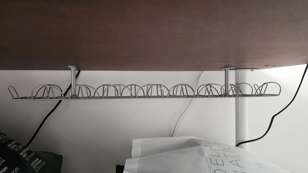 Declutter your workspace with this under desk cable management tray! It's perfect for keeping those pesky wires organized and out of sight. This tray is easy to install and will make a big difference in the tidiness of your workspace