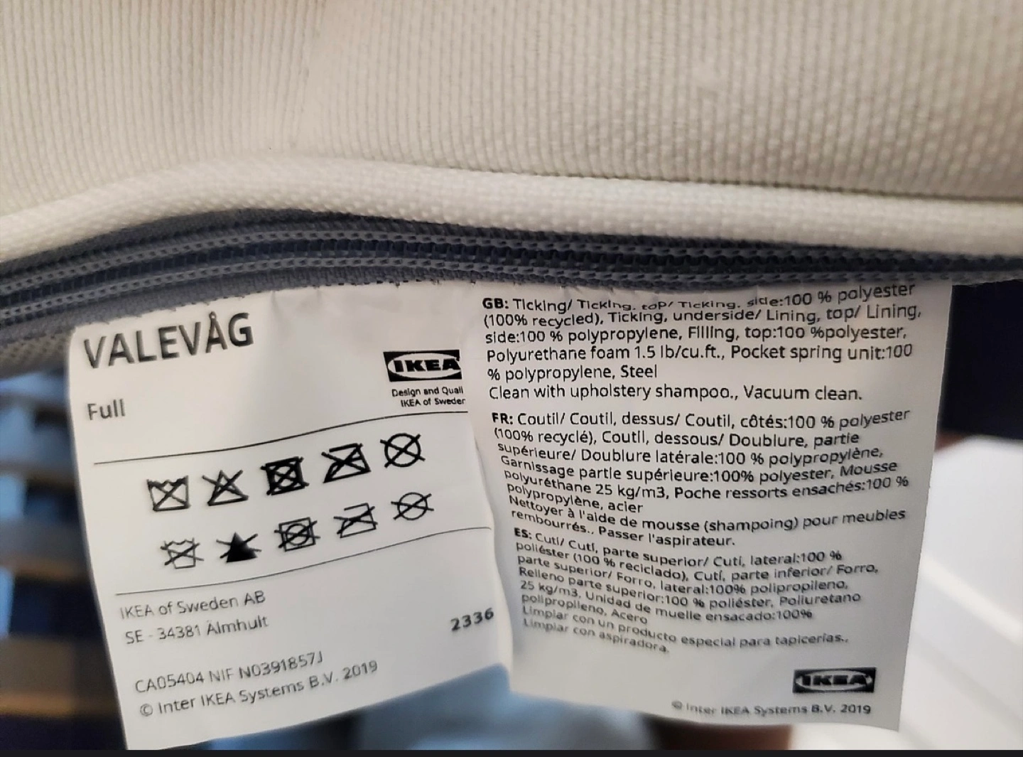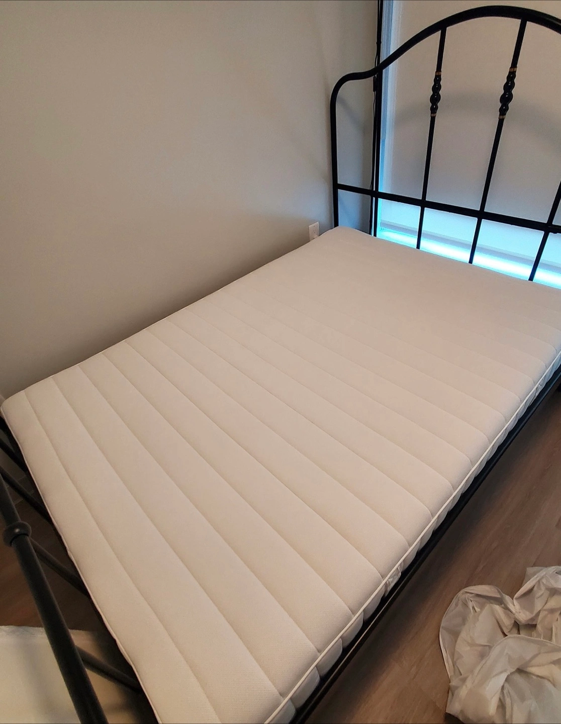 40Selling an IKEA VALEVÅG full-size mattress along with a sturdy metal bed frame. The mattress is in great shape, ready for a new home! Metal frame will be disassembled. +topper + mirror I can give you all for free. These are in all good condition. Please contact me if you are really interested in! You need a big truck for them. No delivery! only pick up available. 🙏