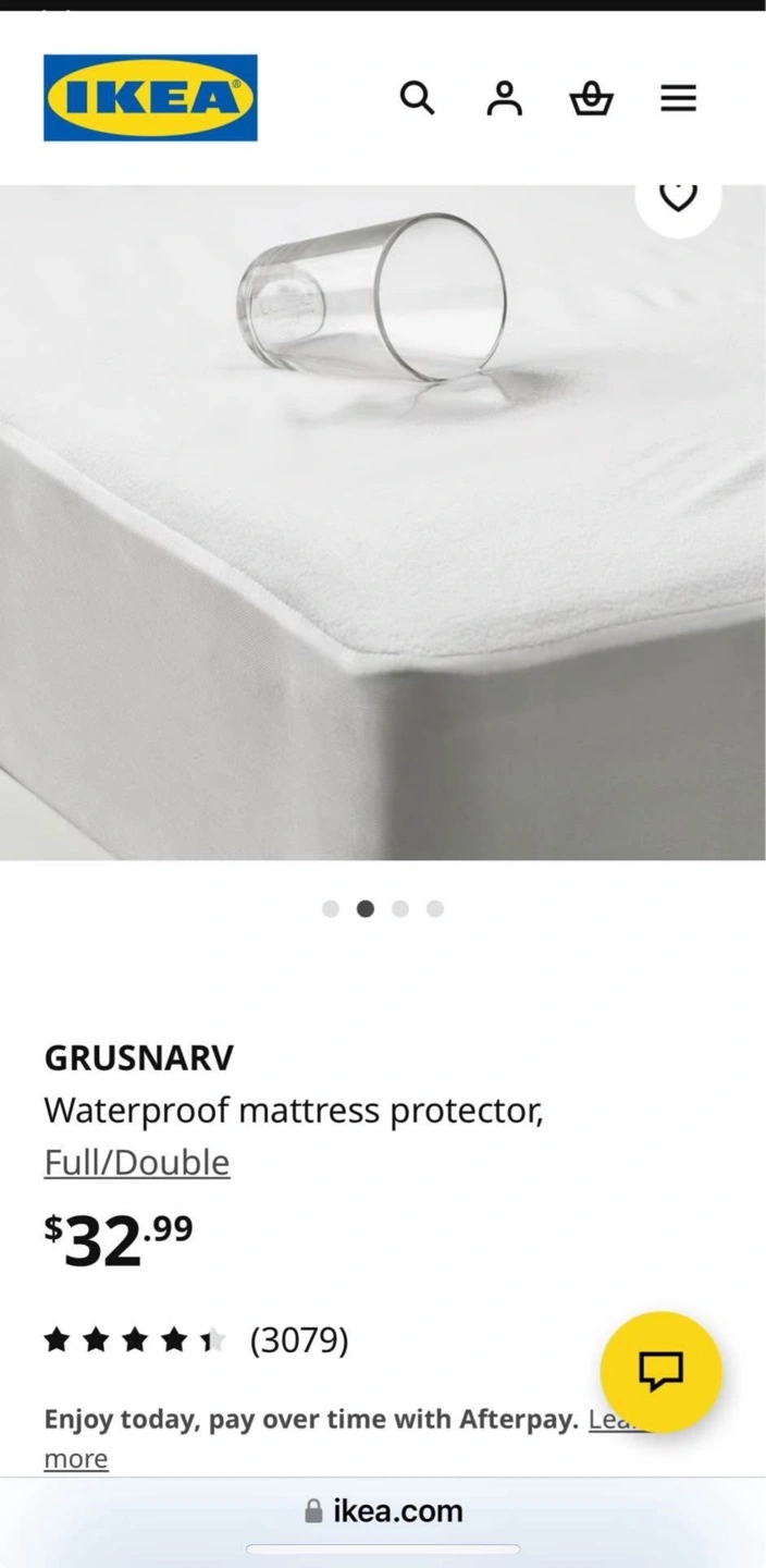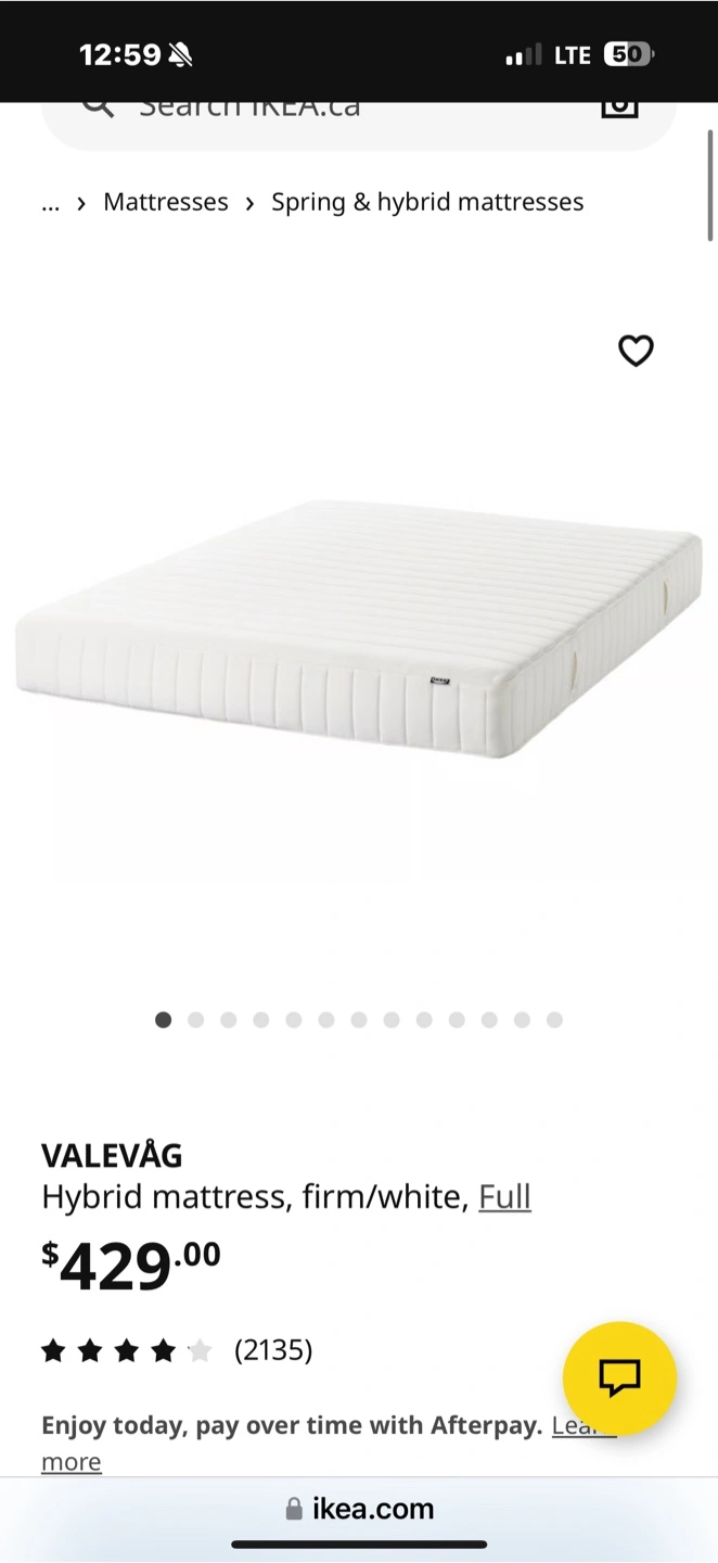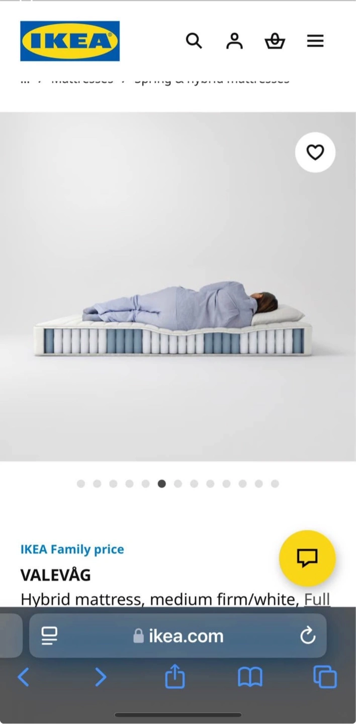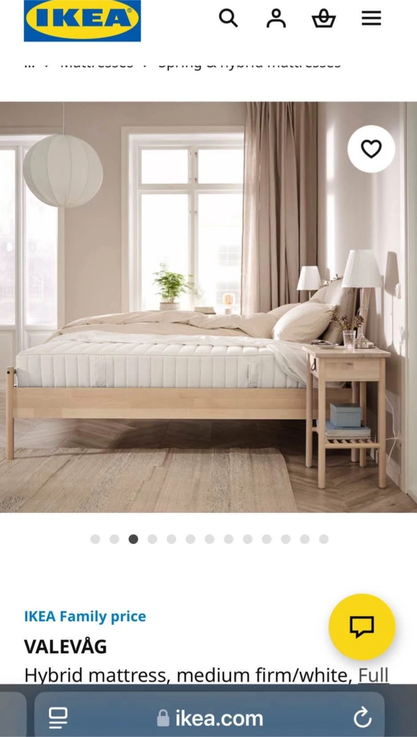 Selling an IKEA VALEVÅG hybrid mattress in full size. It's a medium-firm mattress. Dimensions are 135 cm x 189 cm. Also included is a GRUSNARV waterproof mattress protector for full/double size and a NATTJASMIN fitted sheet in dark gray, also for full/double. Originally, the mattress was $429 and the protector was $32.99