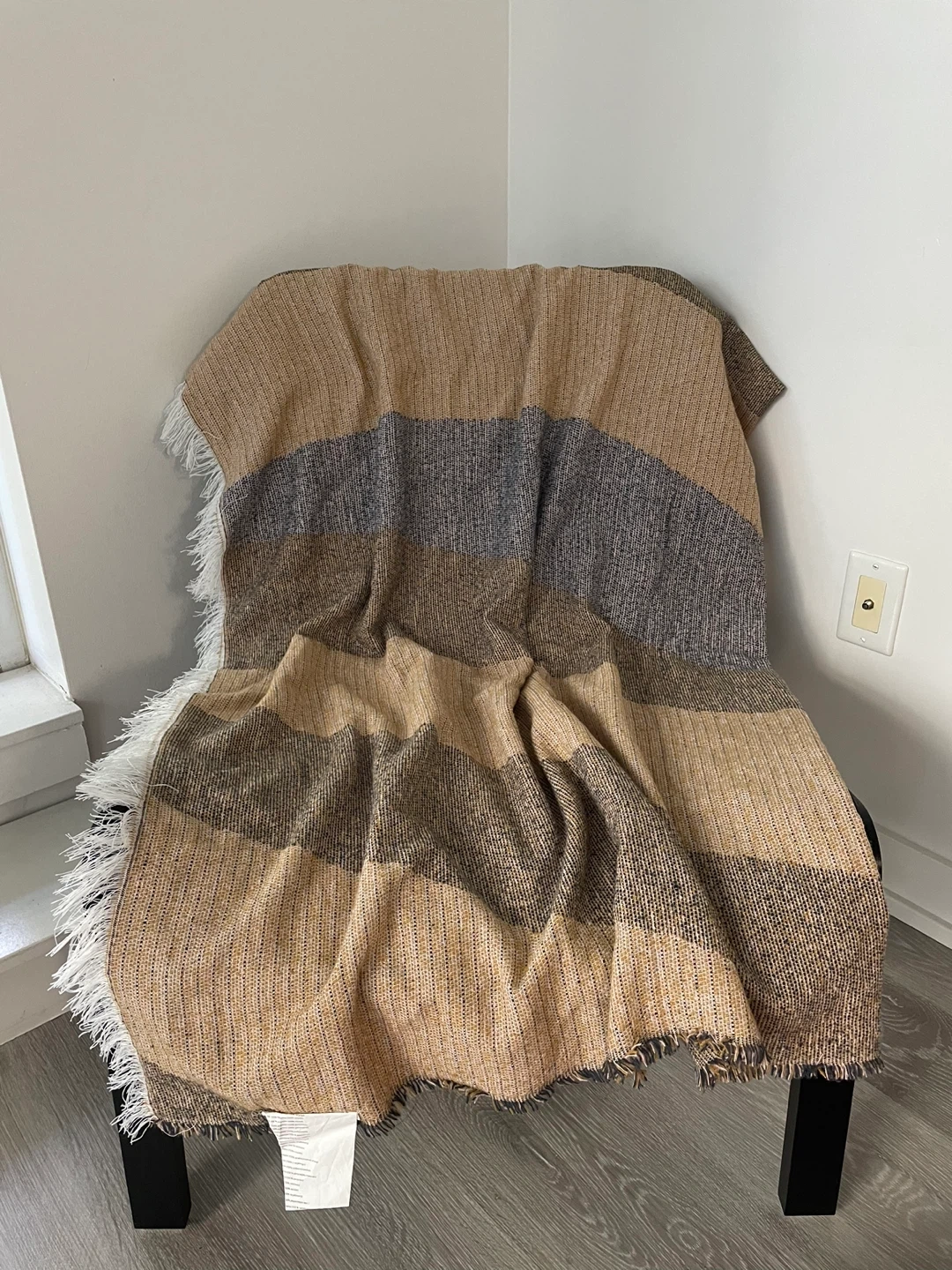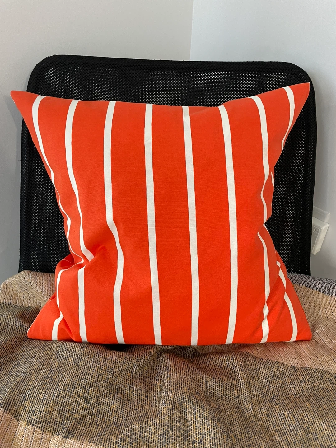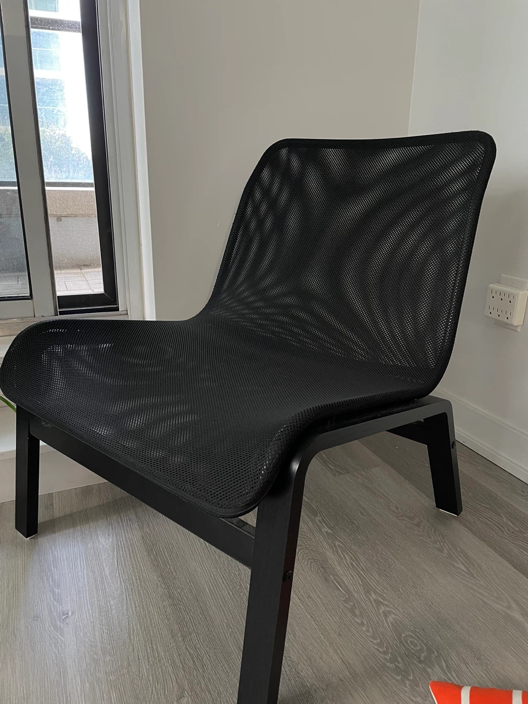 451. Ikea Vippslide blanket 130 x 170cm 2. Ikea Nickfibbla cushion 50 x 50cm with orange and whit cover Selling a comfy IKEA chair! It's black and comes with a cute orange and white striped cushion. I'm also including a cozy VIPSVIDE blanket (130x170 cm) to complete the set! The blanket is made of 100% polyester