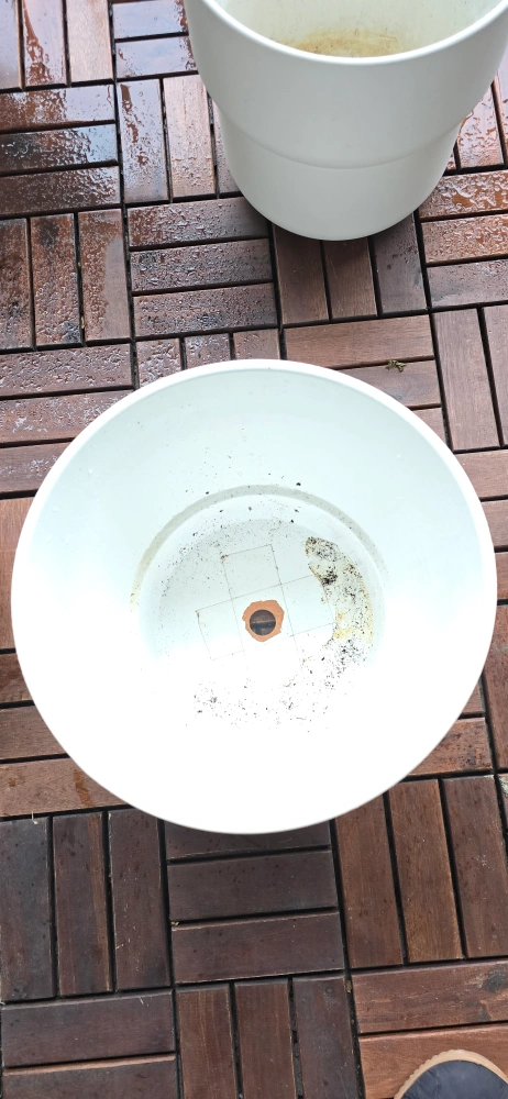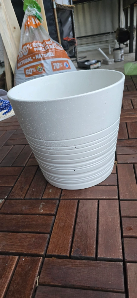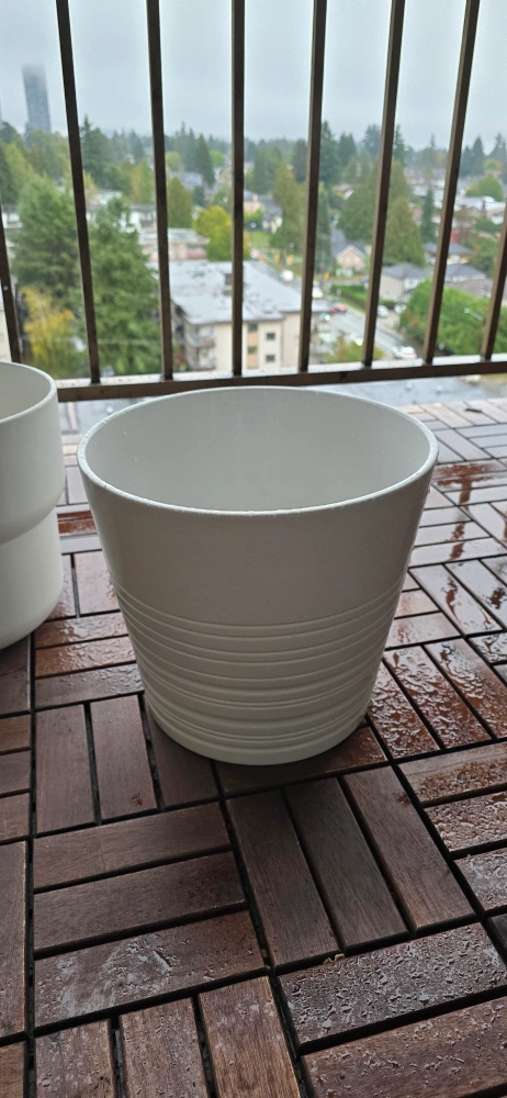 Selling a white big IKEA plant pots. It has some signs of use inside as shown in the pictures. prepped but never used for one, the other one was used once.. Both have holes for drainage but covered with a sealed tape. Can be removed upon request.