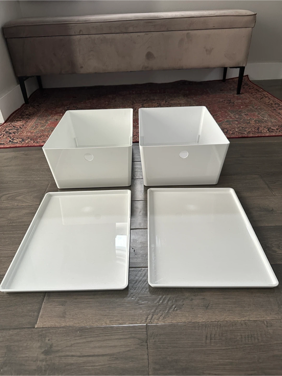 292Selling a set of white IKEA storage bins, complete with their lids. These are perfect for organizing your space and keeping things tidy. They're in great condition and ready for a new home! Both for $10