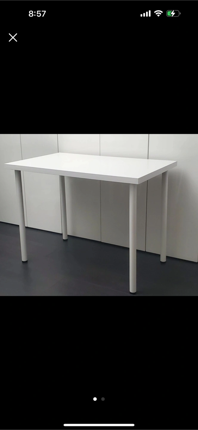 809Selling a white IKEA table. It's in great condition and ready for a new home! It's a simple and stylish table that would look great in any room Chair are 3 blue in colour