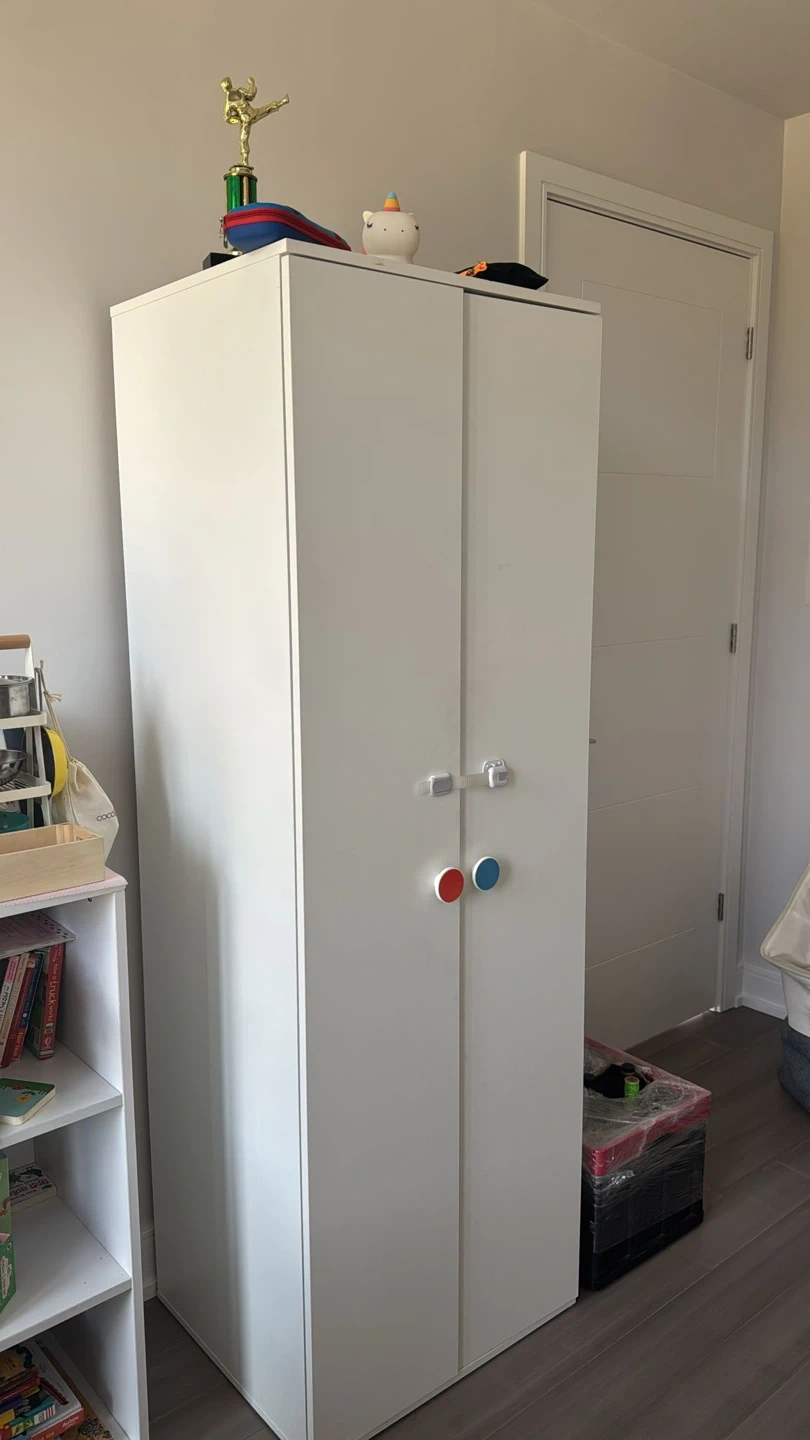 80GODISHUS Wardrobe, white, 60x54x178 cm (23 5/8x21 1/4x70 1/8 ") Selling a white IKEA Stuva wardrobe! It's in great condition and perfect for a kid's room or any space needing extra storage. The wardrobe has a clean, simple design that fits well with any decor. It's sturdy and provides ample space for clothes and other items. A great addition to keep things organized!