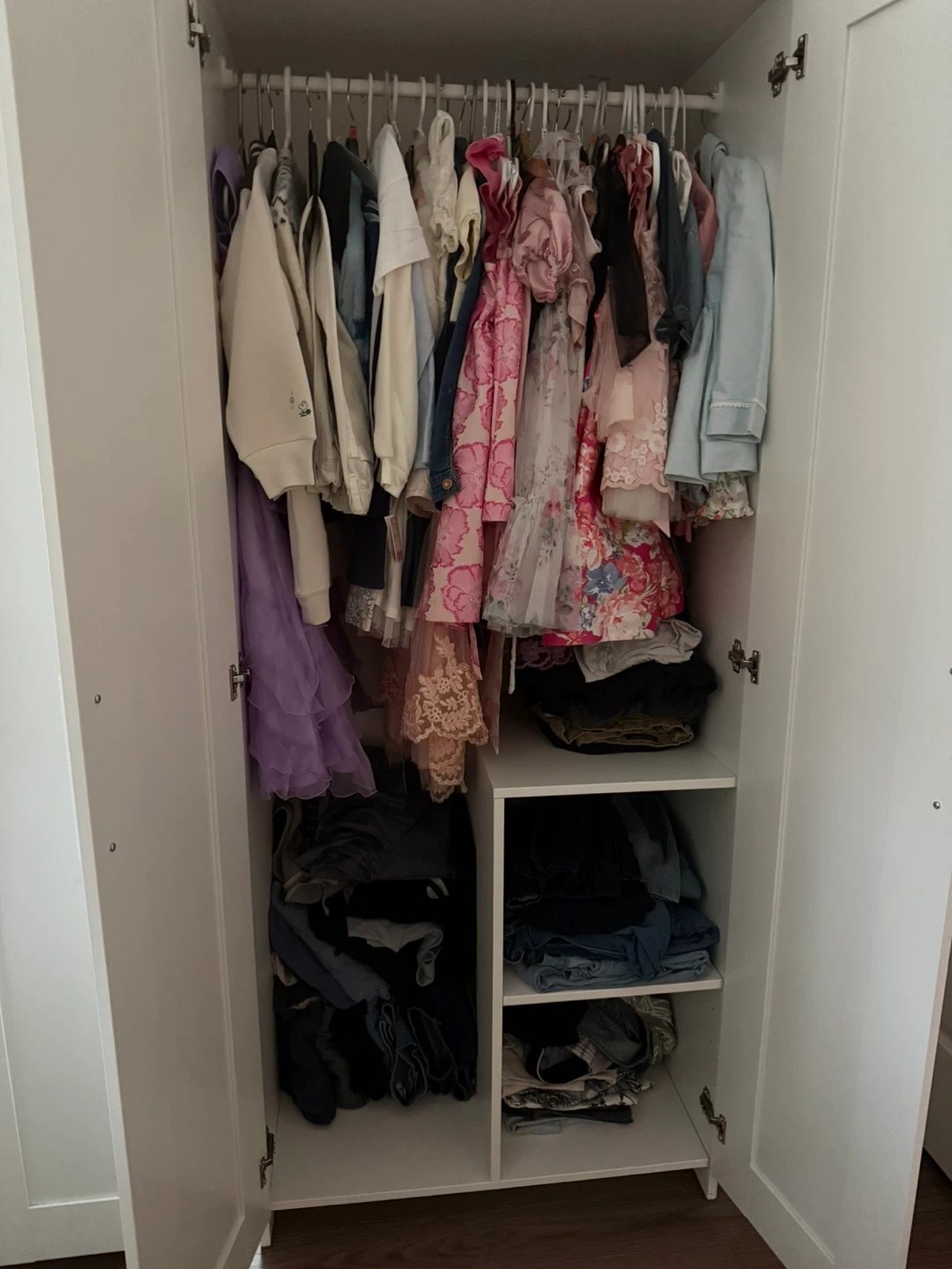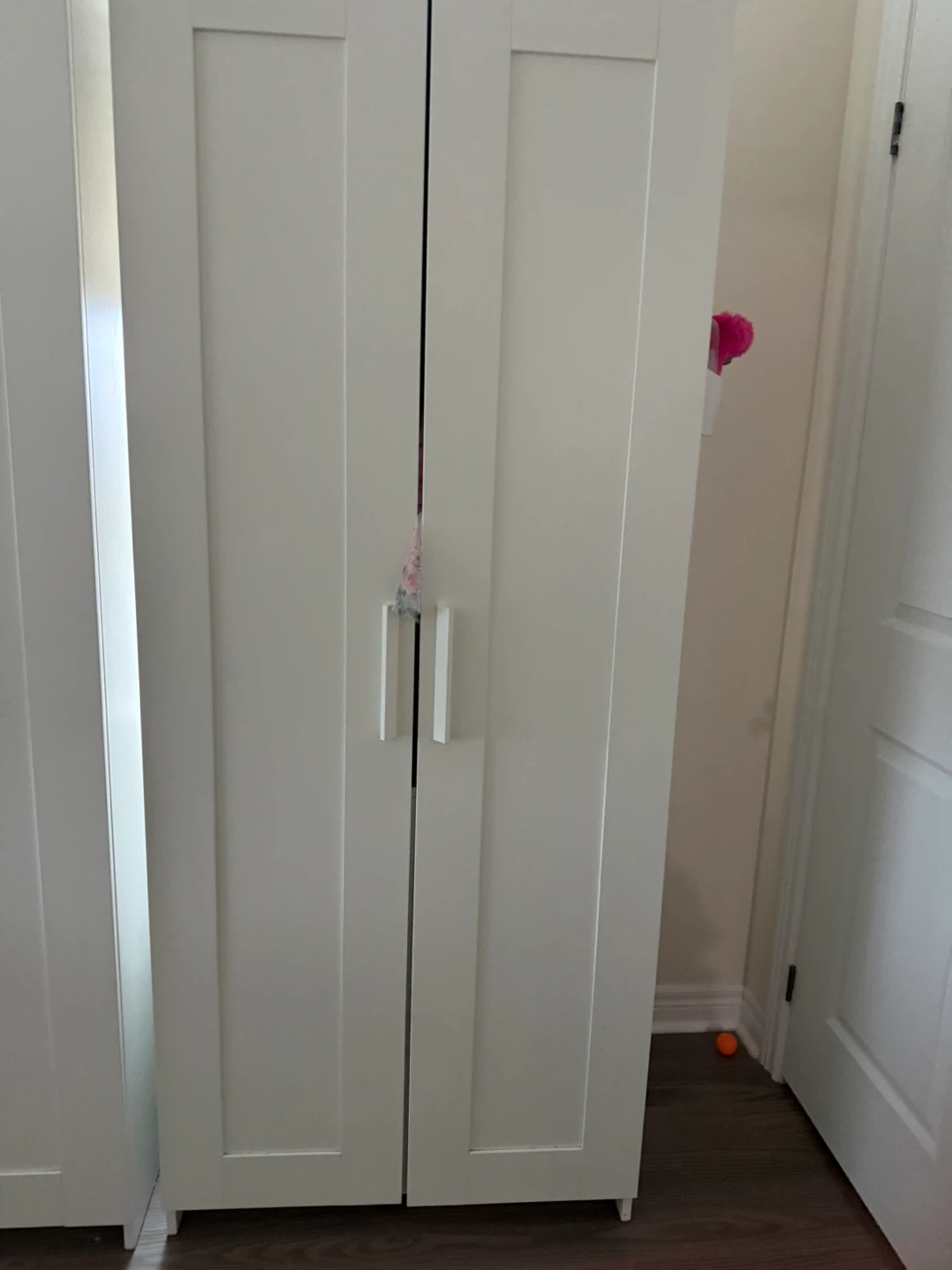 67Selling a white wardrobe that's in great shape! It has two doors and includes shelves inside for easy organization. Perfect for adding extra storage to any room in your home Pick up in December 1st week