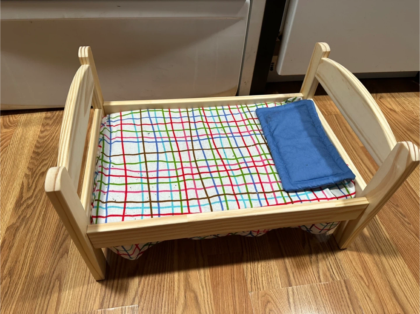 71A cute little wooden doll bed, perfect for your little one's favourite doll (or your cats new bed)!