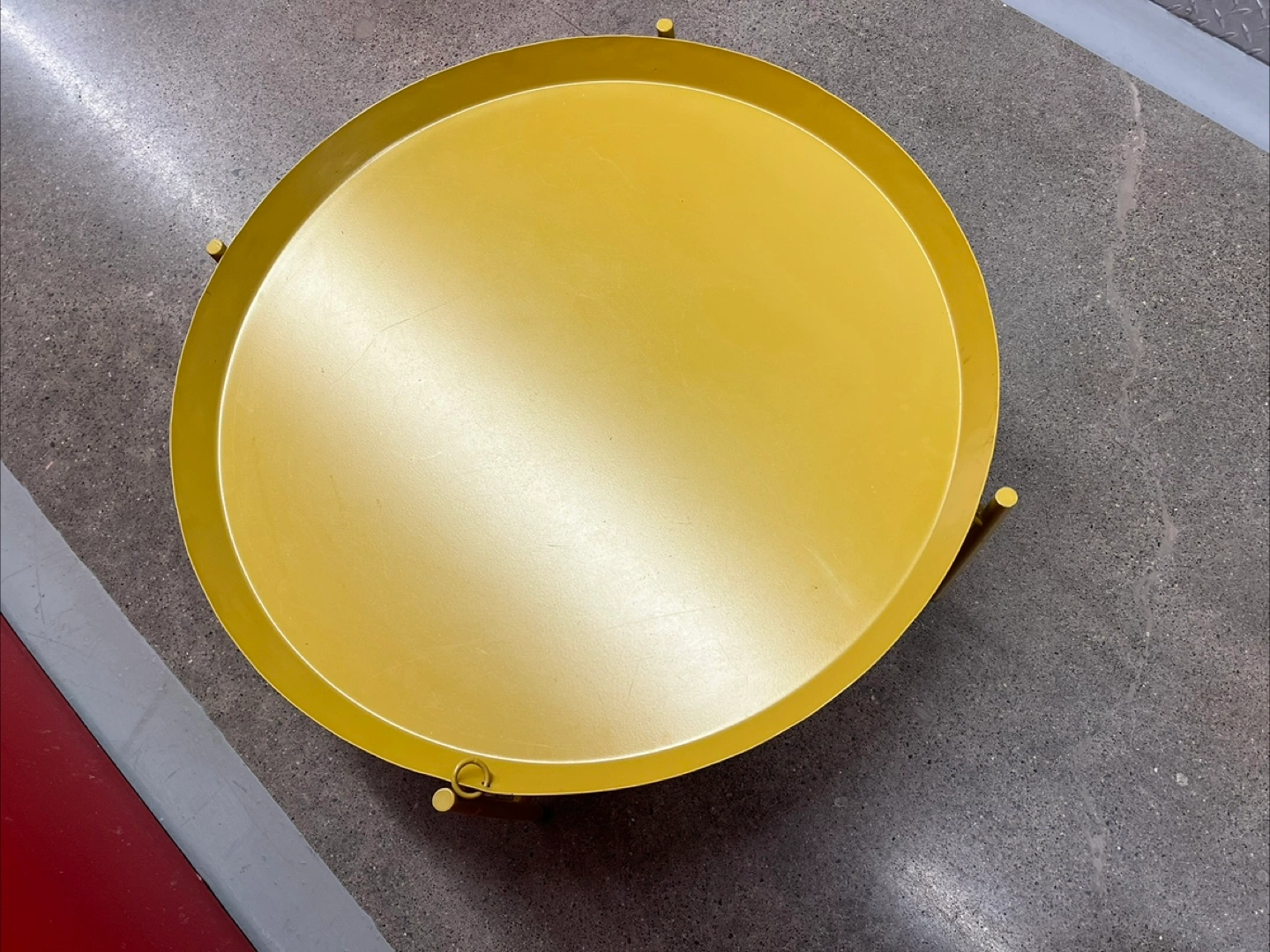 Selling a cute yellow, round metal tray coffee table! It's in great shape and would look great in any living room or den