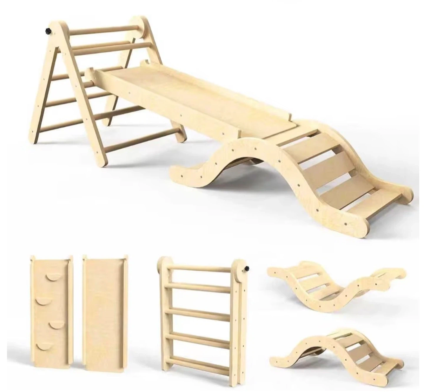 Wooden Pikler Triangle Climber with Slide and Rocker Set