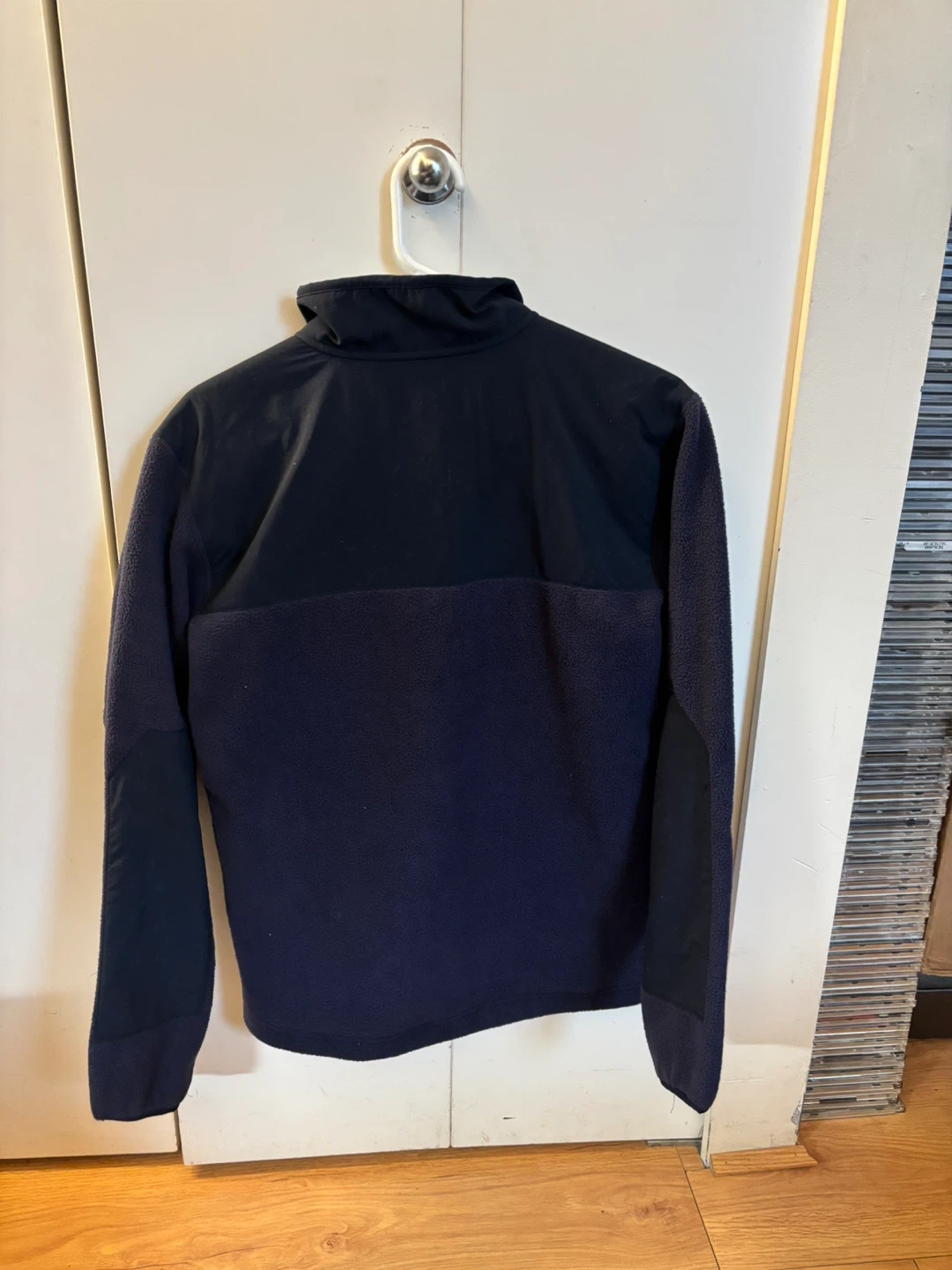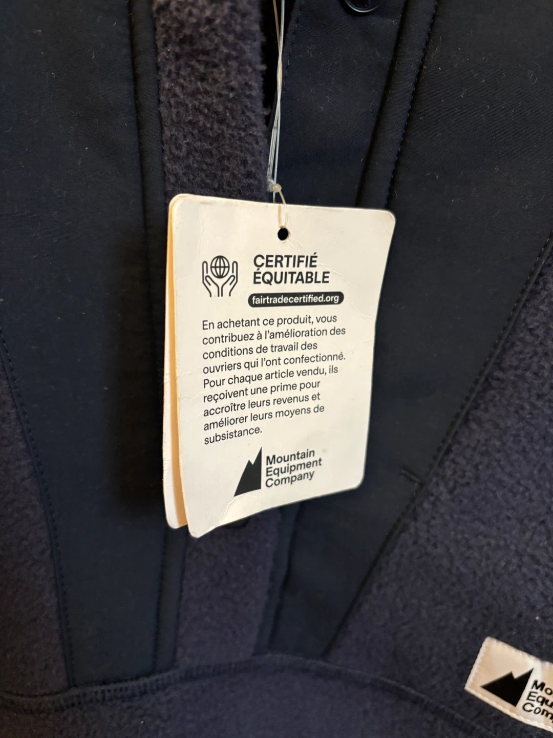 This is a Mountain Equipment Company Fireside Fleece Snap Pullover for women in size small. It's a deep navy colour. The pullover is made from fleece material and features a snap closure.