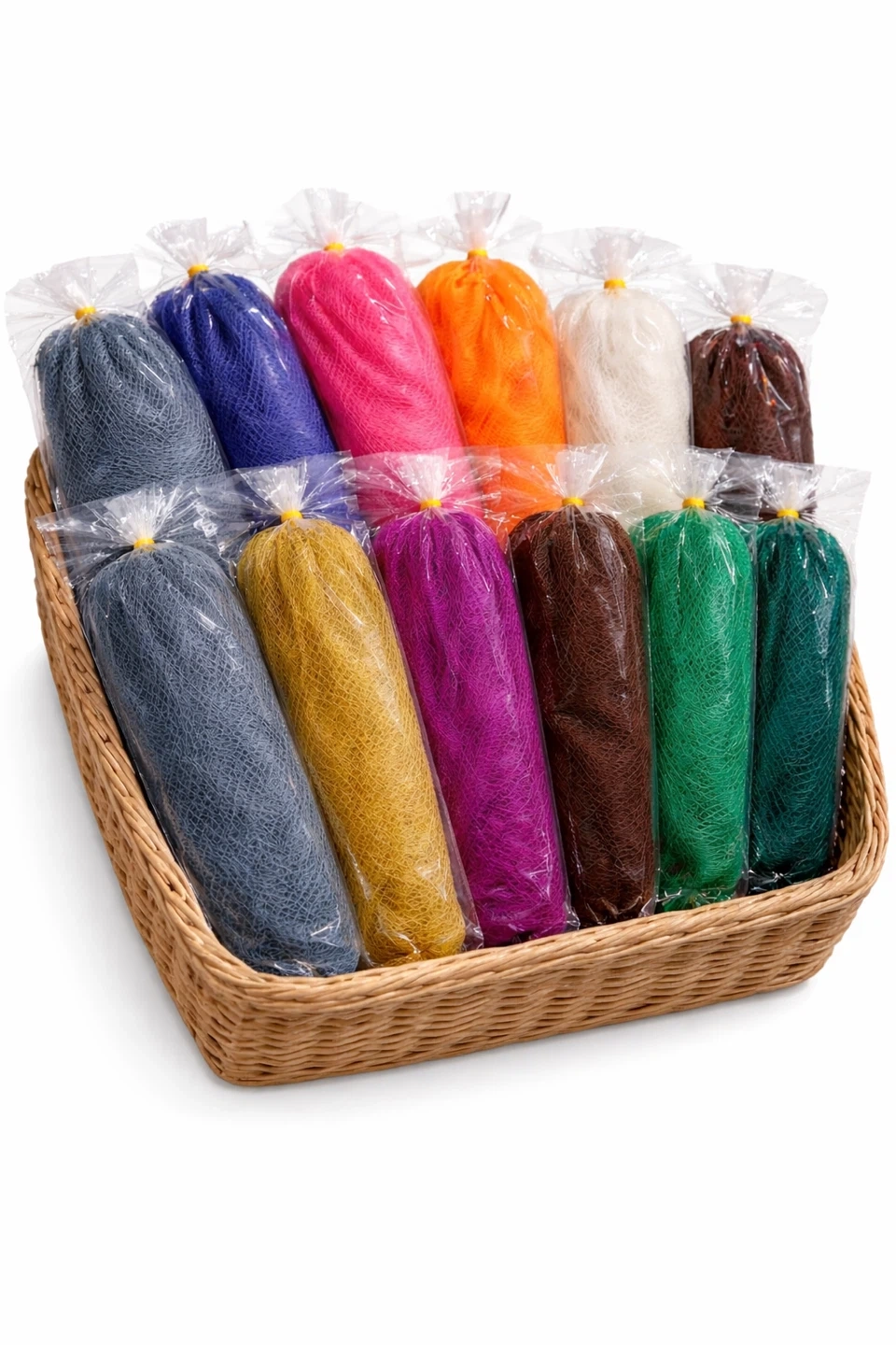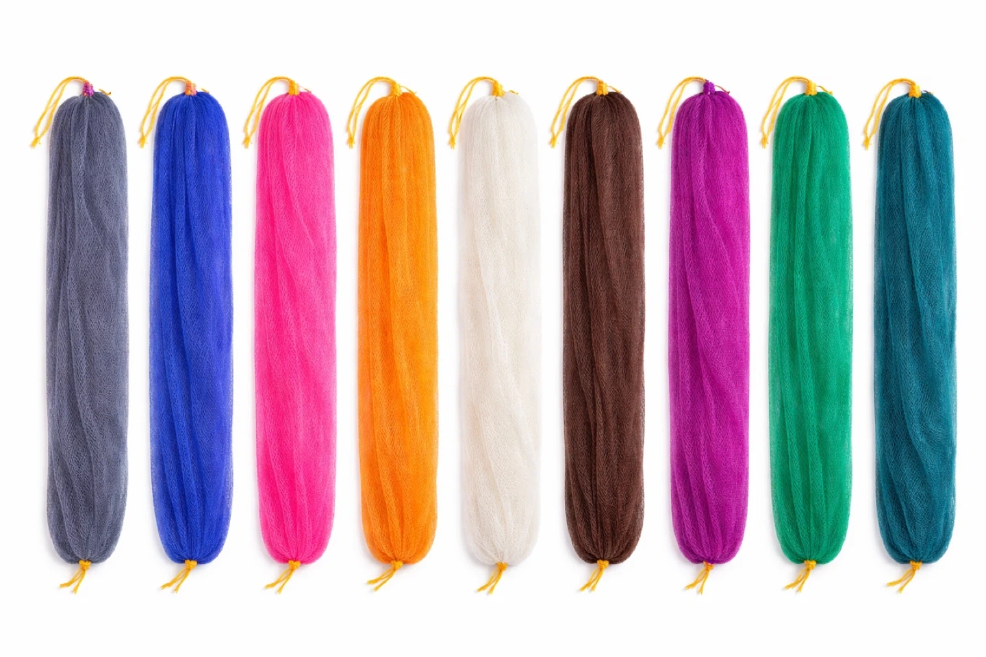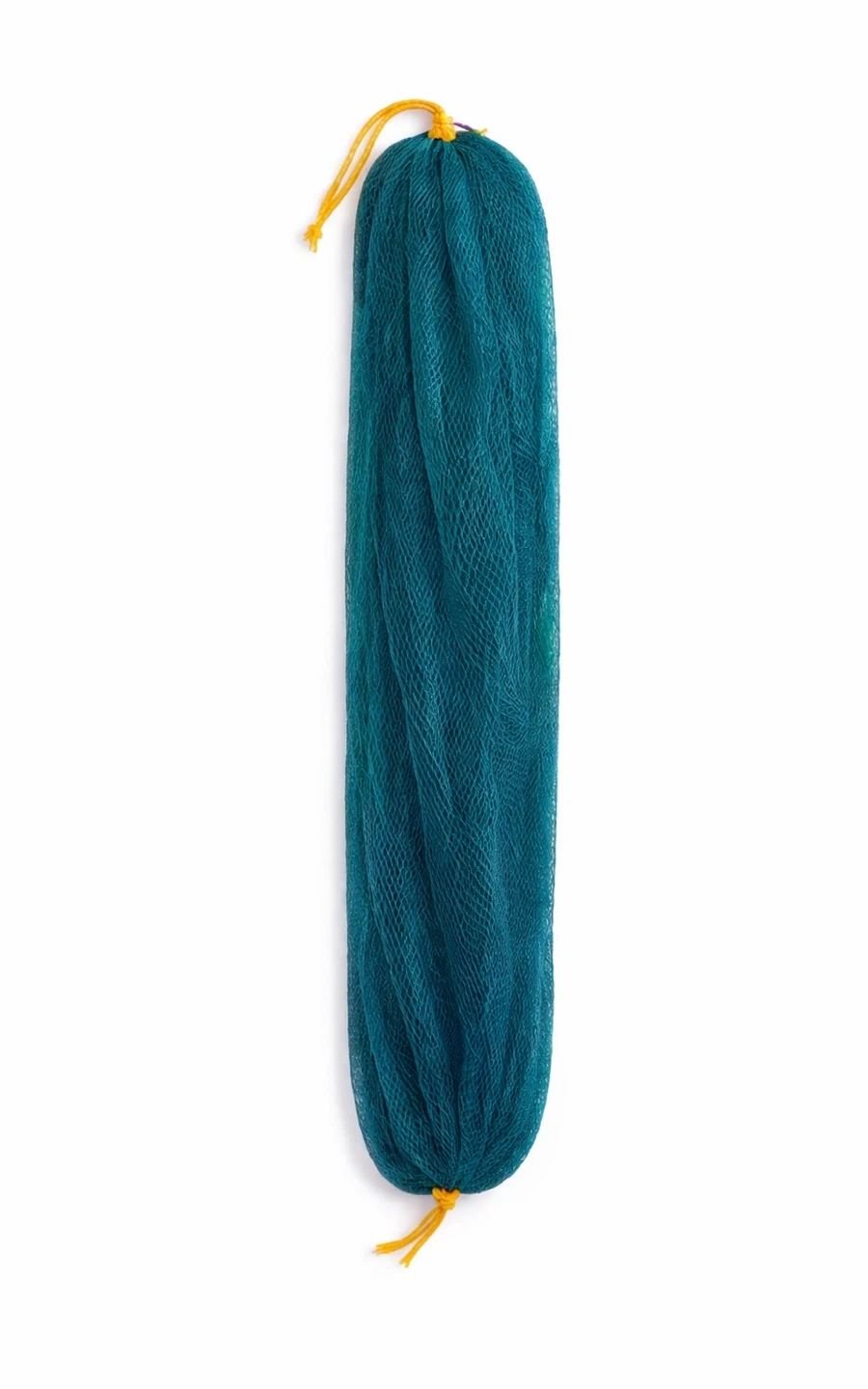 This long mesh bath sponge is 31.5 inches (80 cm) long. It's made of mesh material and includes a yellow drawstring. It's great for reaching your back while showering.