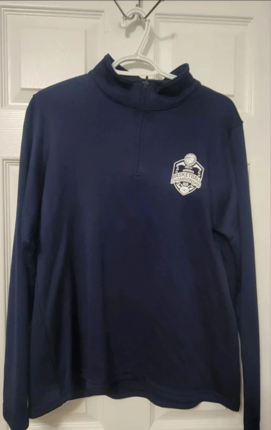 Augusta Sportswear navy blue 1/4 zip long sleeve top for ladies. It's a size large with moisture management. Made in Mexico.