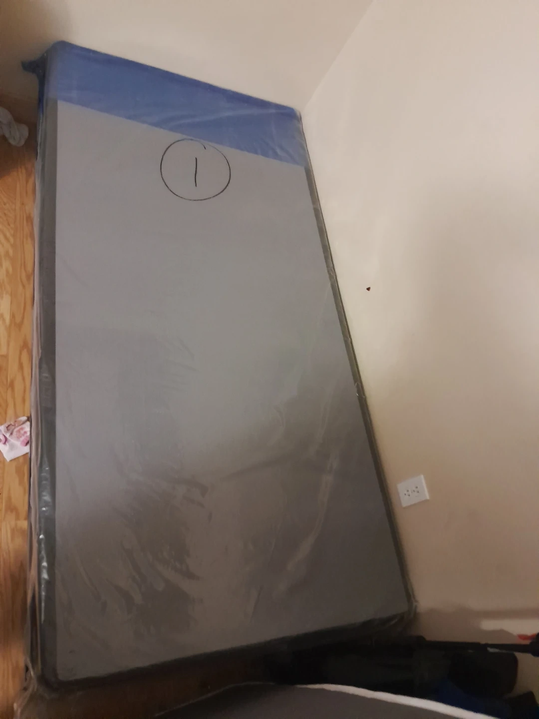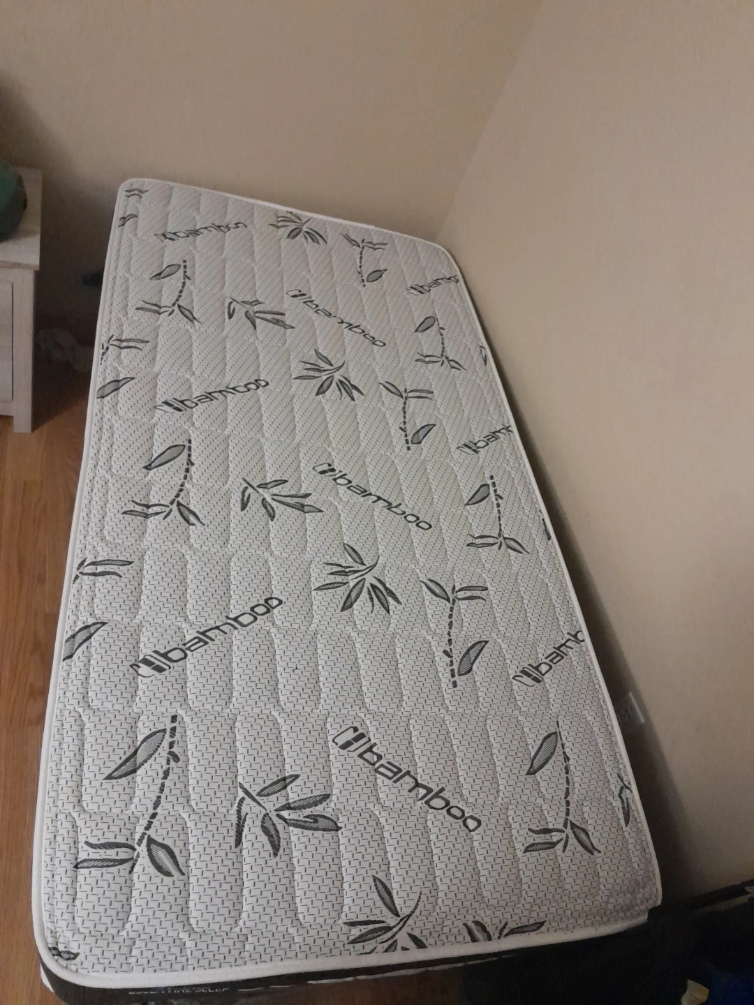 This is a bamboo mattress. It's a single-sized mattress with a patterned cover. The boxspring is wrapped in plastic with a metal frame i will include mattress & boxspring protector