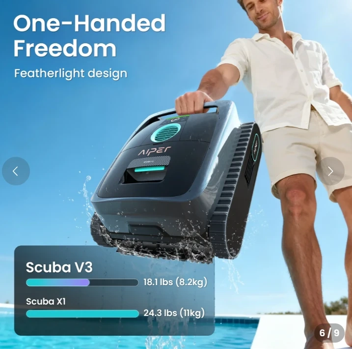 (2026 New) AIPER Scuba V3 AI Vision Cordless Robotic Pool Cleaner, Include Wireless Charging Dock, Smart Waterline Parking & Featherlight Design, Micromesh Multi-Layer Filtration, Brand New in the Box/Sealed