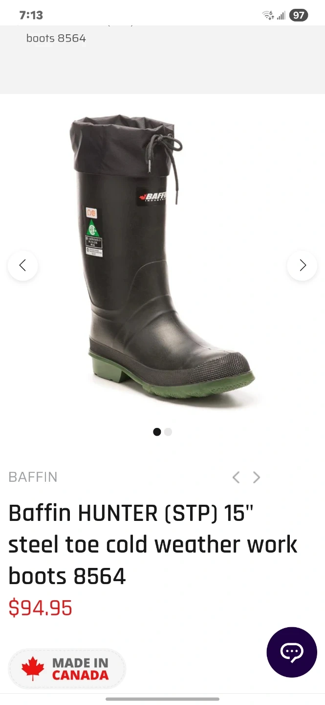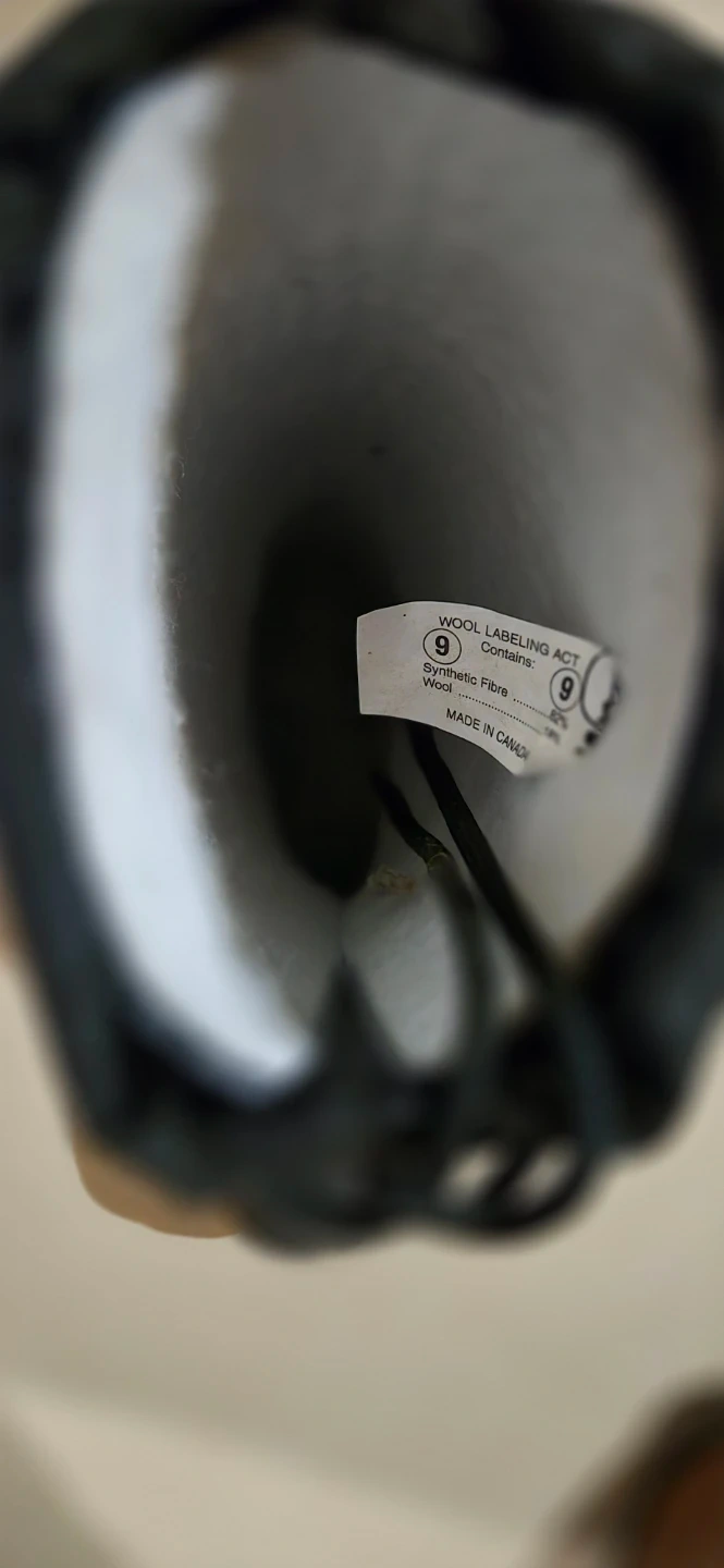 Black Baffin Technology boots. Made in Canada. Contains synthetic fibre and wool.