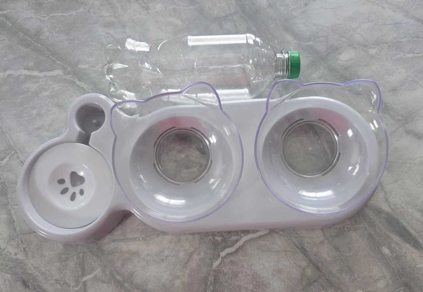 Double Bowl Cats Feeding Watering Bowl Space Saving Automatic