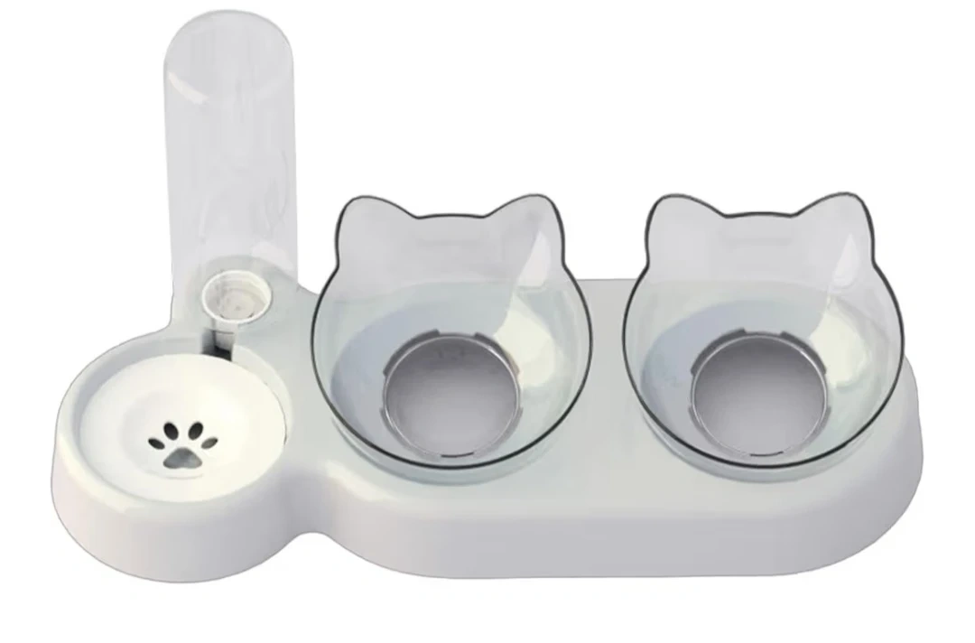 Double Bowl Cats Feeding Watering Bowl Space Saving Automatic Eatting Watering Bowl for Indoor Feeding Drinking Bowl