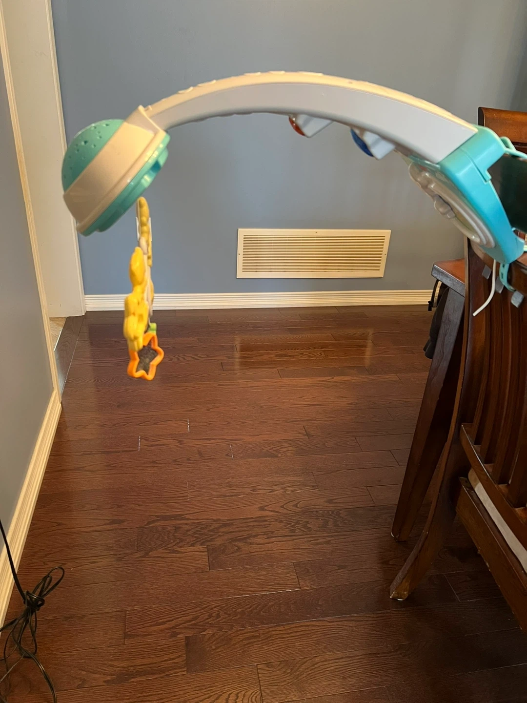 This Fisher-Price crib mobile features music and spinning toys to entertain your baby. It attaches securely to most cribs. A great addition to any nursery!