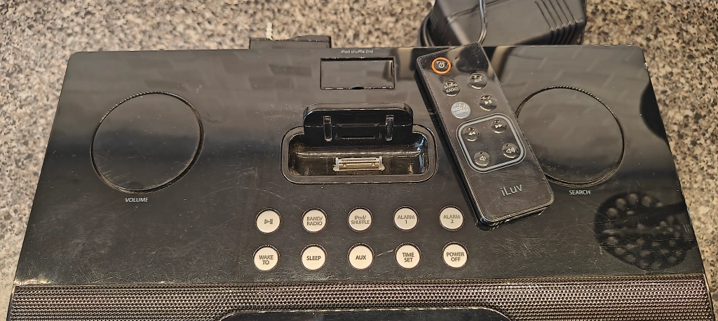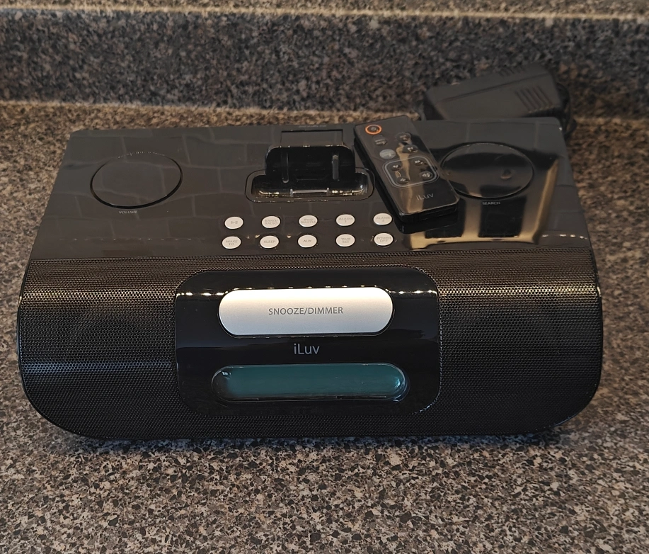 Selling an iLuv iPod/iPhone docking clock radio. It comes with a remote. It has a snooze/dimmer function. It also has FM radio.