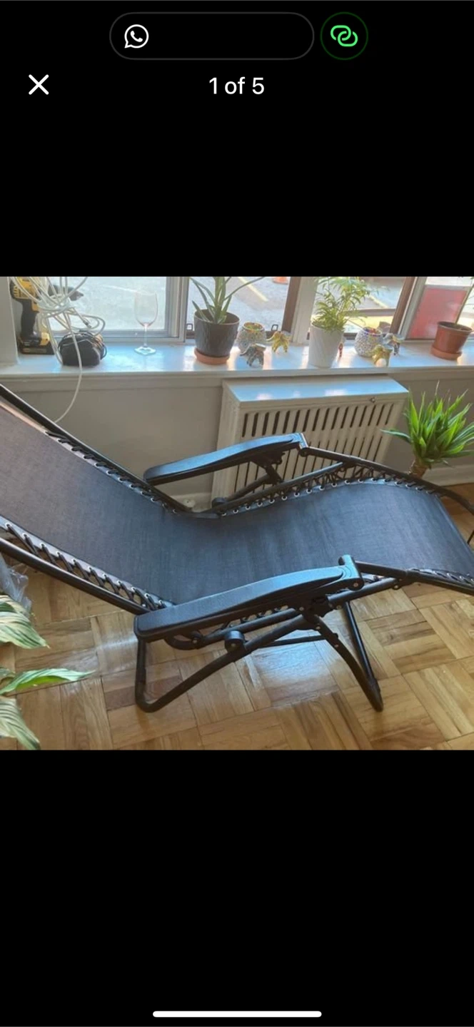 Selling a zero gravity lounge chair in black. It's in good condition and ready for a new spot on your patio or balcony! Super comfy for relaxing outdoors. Price mentioned in picture.