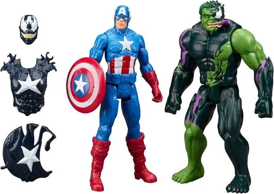 Large 12-inch (30 cm) action figures featuring Captain America & Hulk with a unique Venom-inspired look.