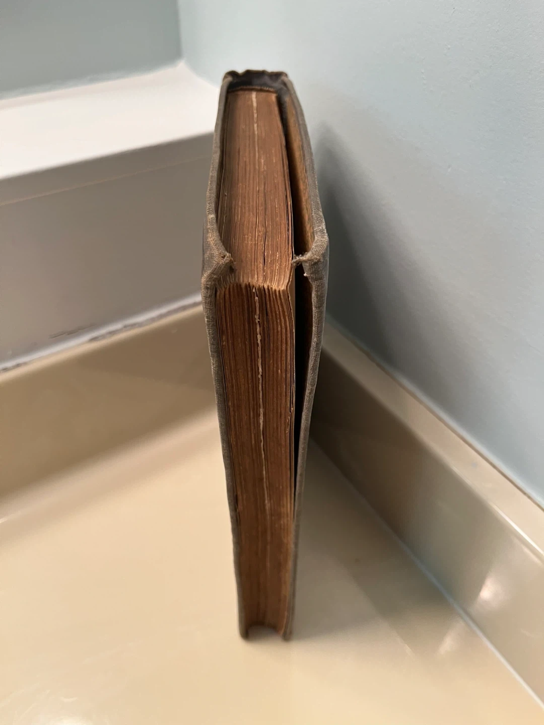 Expected wear and tear of a book this age. Spine is fairly loose, pages are brown on the edges, a couple pages have tears, dirt and wear on cover and back