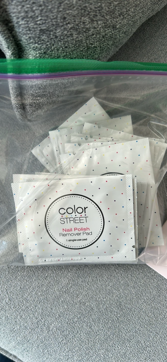 12 sets!!!! Get a salon-quality manicure at home with these Color Street 100% real nail polish strips. They're easy to apply and come in a variety of fun patterns. Includes nail polish remover pads for quick cleanup. Perfect for quick touch-ups or a full nail makeover!