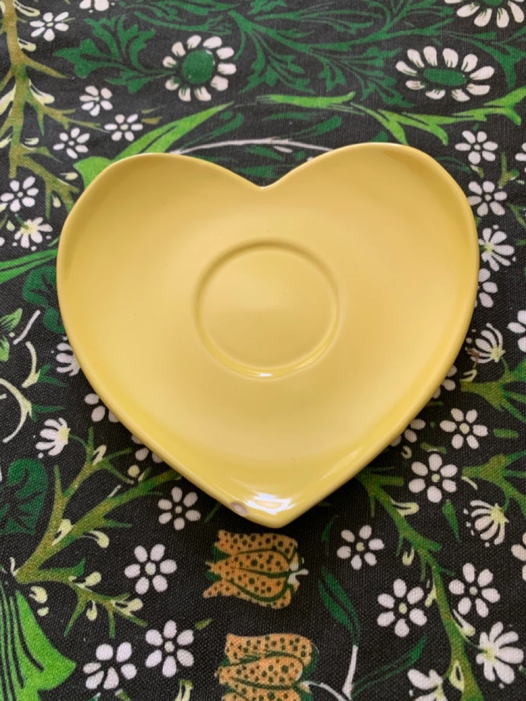 Really cute 6-piece espresso set with cups and matching heart-shaped plates. Would be perfect for summer parties! One plate has a minor chip as pictured