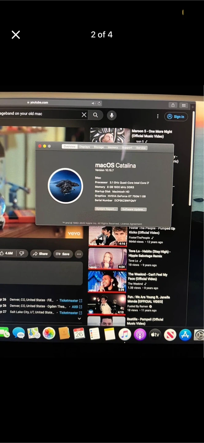 88Selling a used iMac 21.5 inch from late 2013 (1920~1080) . It's running macOS Catalina Version 10.15.7. Specs include: - Processor: 3.1 GHz Quad-Core Intel Core i7 - Memory: 8 GB 1600 MHz DDR3 macintosh HD 1TB - Graphics: NVIDIA GeForce GT 750M 1 GB Power chord included, comes with keyboard and mouse ( wireless mouse and keyboard included) Works great !! Scratchless If you want there us a lamp and computer table available with it. Selling it bought a new mac!
