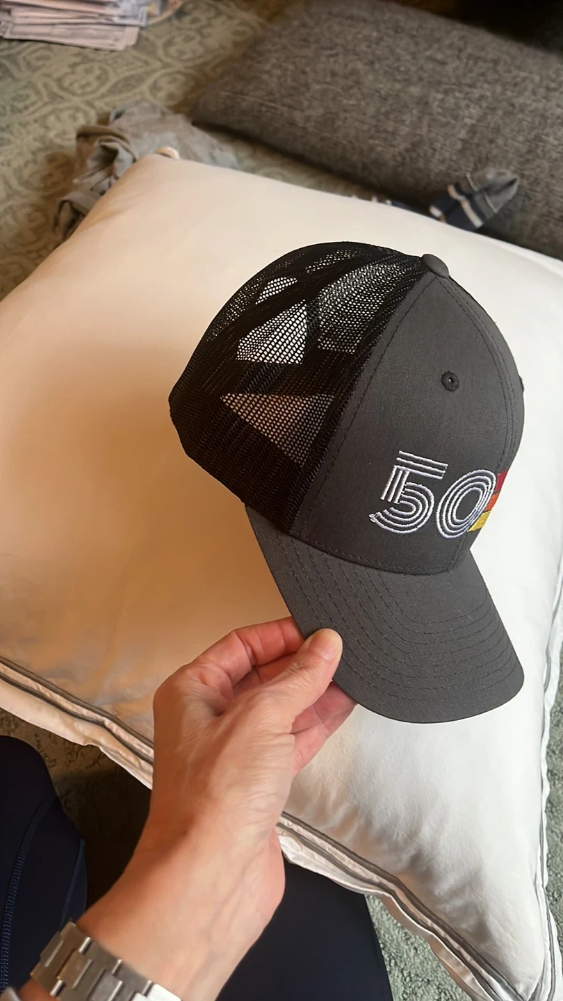 Selling a Classics trucker hat in black! It has a cool design with the number 50 and a sunset graphic. It's in great condition and ready for a new owner