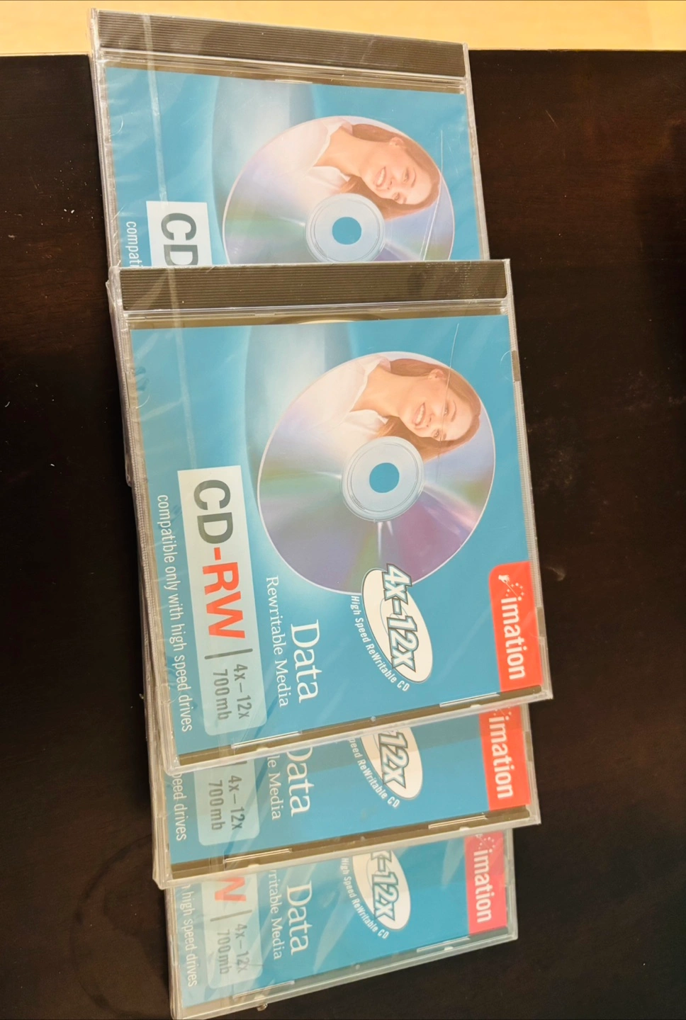 18Selling a stack of Imation Data CD-RW discs. These are rewritable media, 4x-12x speed, and 700mb capacity. Compatible with high speed drives.