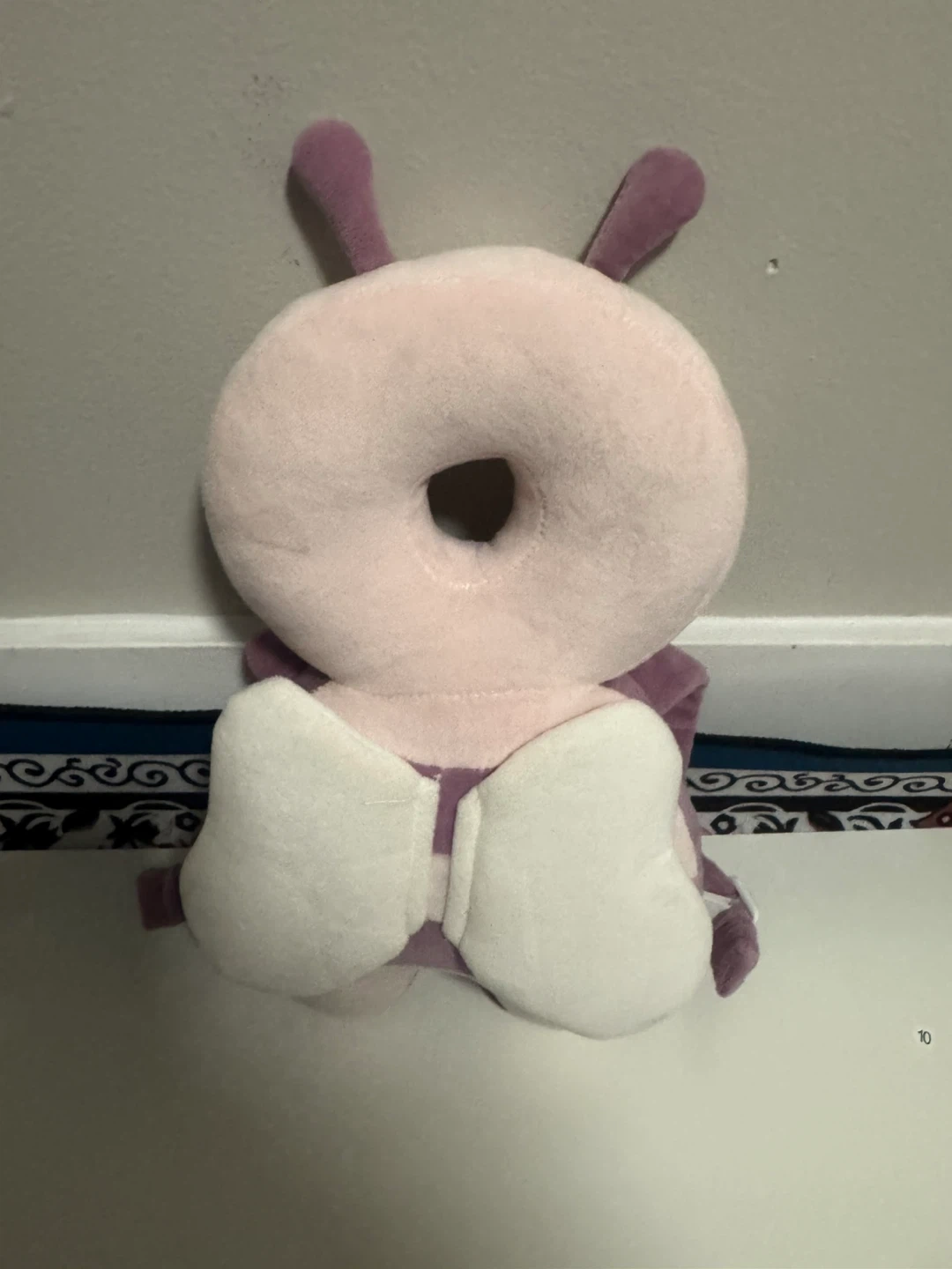Cute butterfly-shaped pillow to protect your baby's head. It's soft and made of plush material. Ideal for babies learning to crawl or walk, providing extra cushioning against bumps. Comes in pink and purple colours.