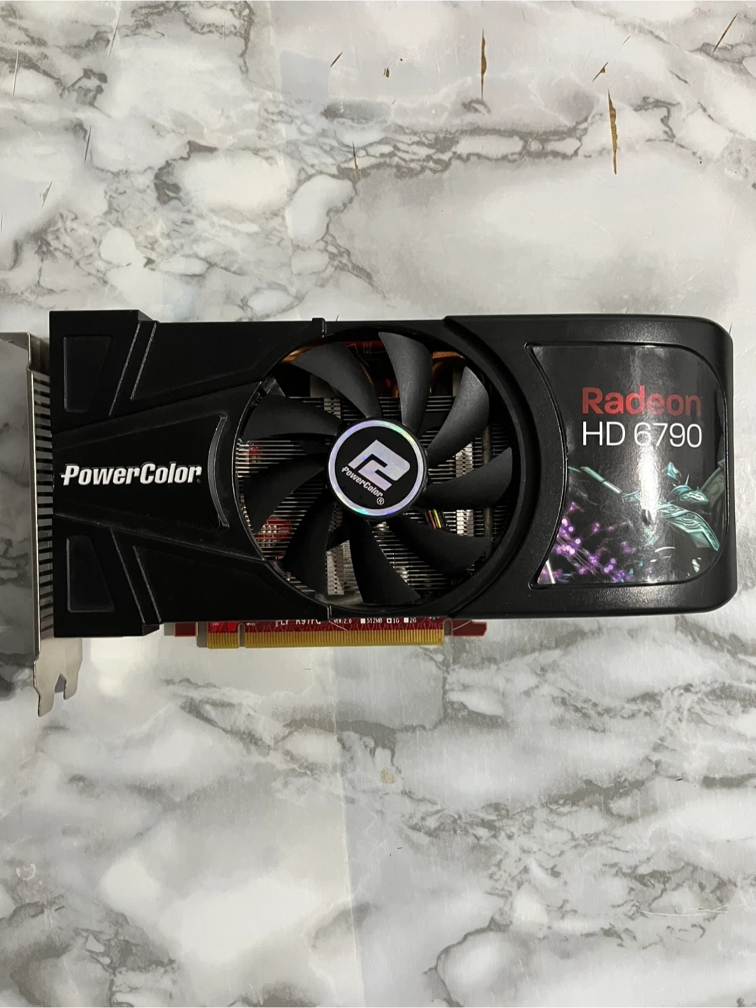 This is a PowerColor Radeon HD 6790 1GB graphics card. It has HDMI, DVI, Mini DisplayPort, and VGA outputs. It's a great upgrade for gaming or multimedia tasks!
