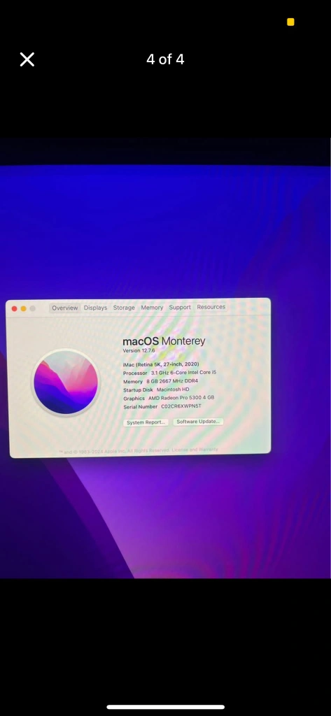 28Apple iMac 27-inch Retina 5K, 2020 model. Includes matching wireless keyboard and mouse. 8GB RAM, 512GB SSD. macOS Monterey installed. Excellent condition.