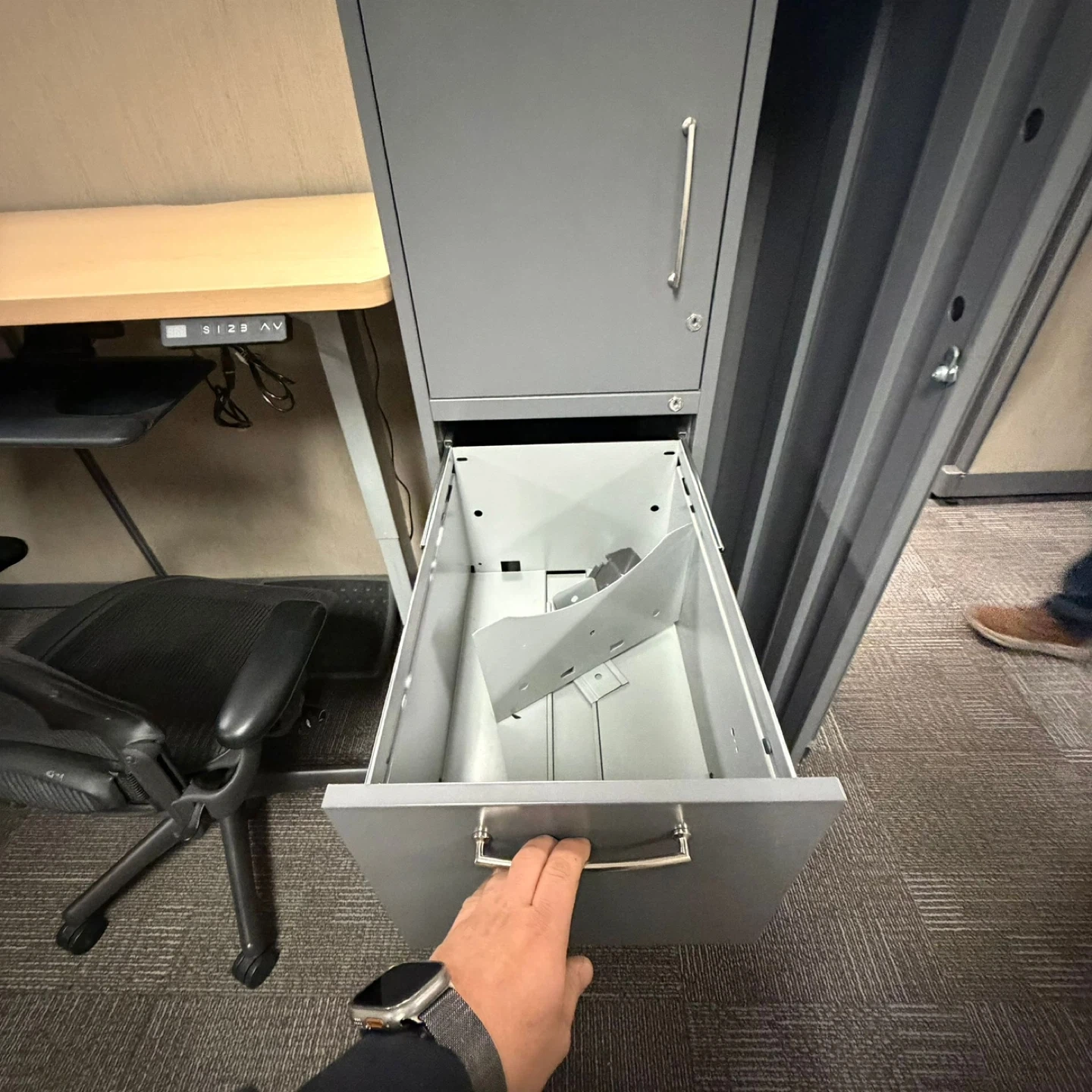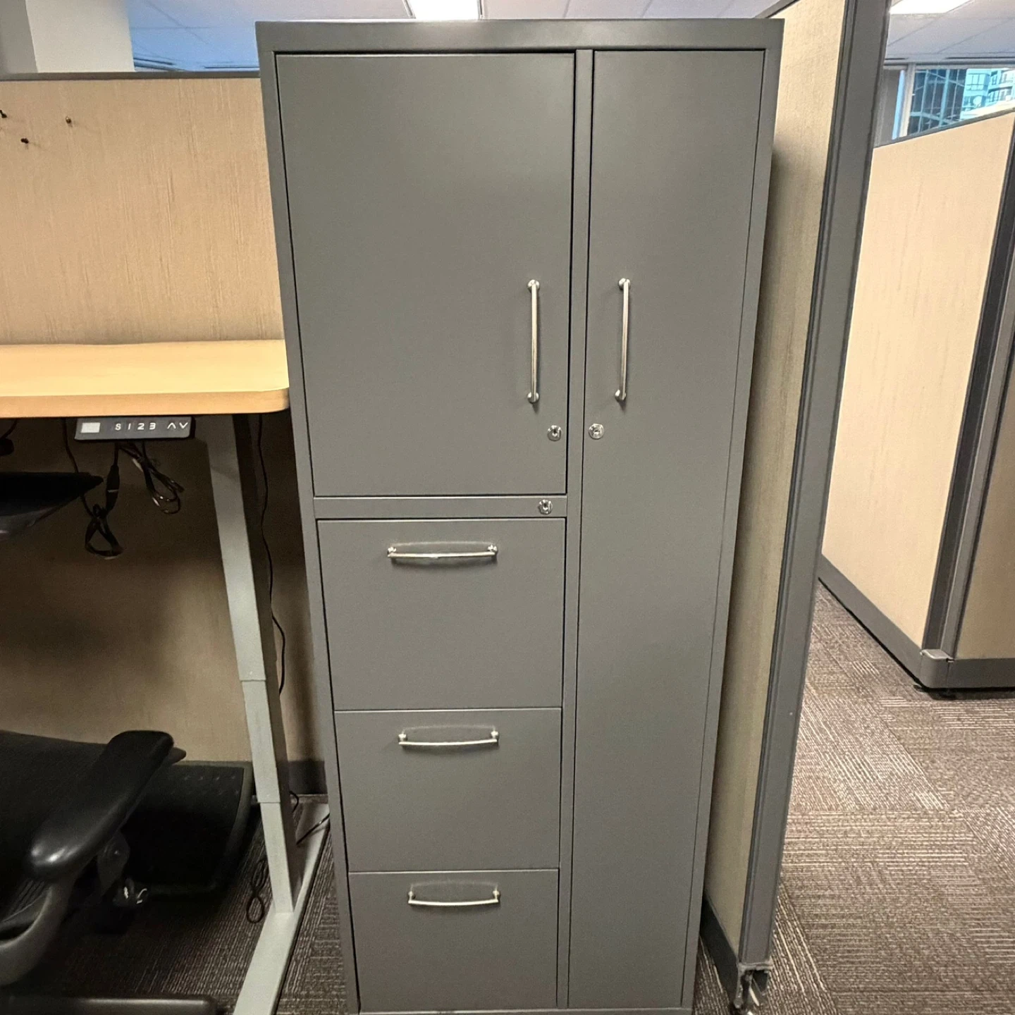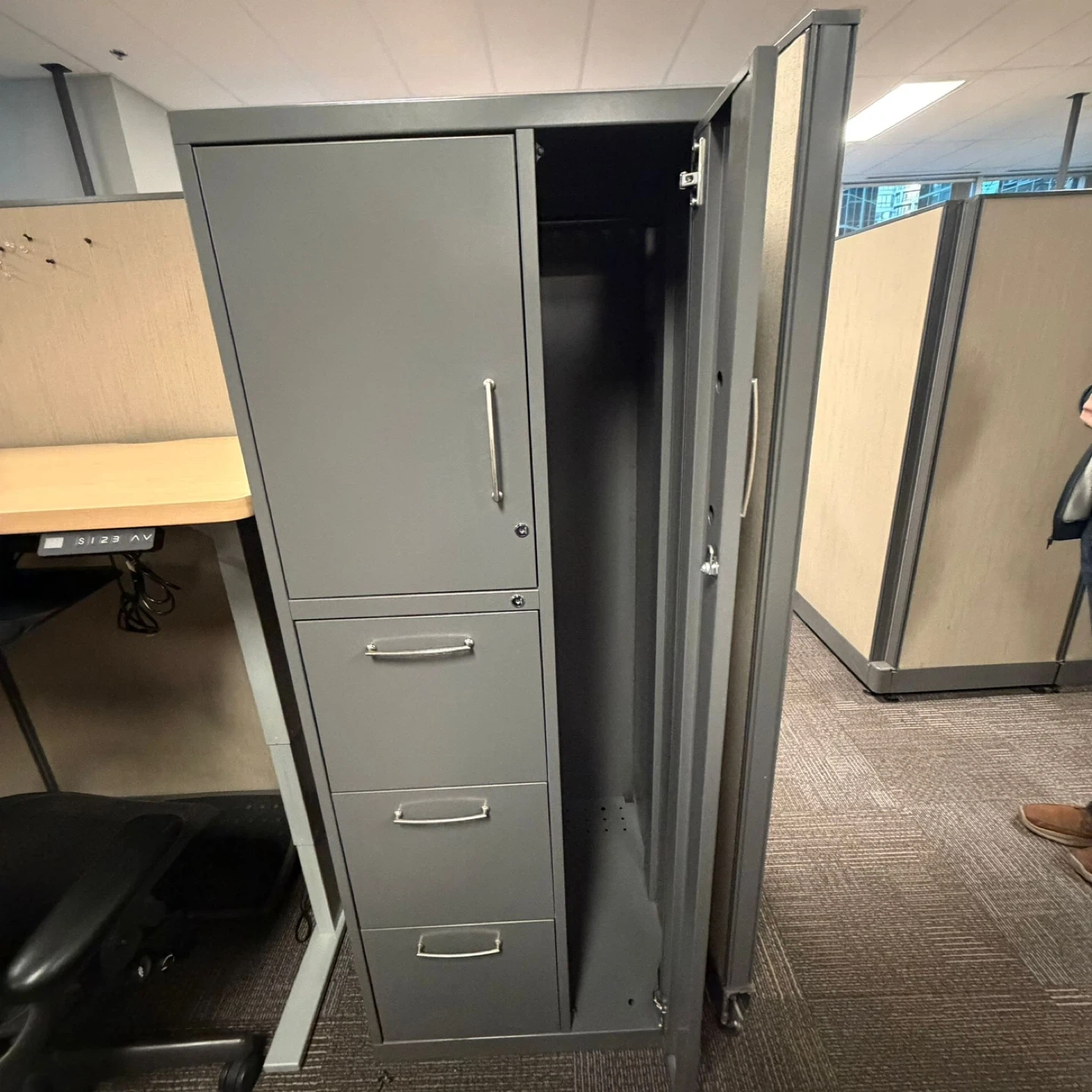 Heavy-duty personal storage cabinet with 3 drawers and full-height locker section. All units are in great condition and come from a professional office environment.