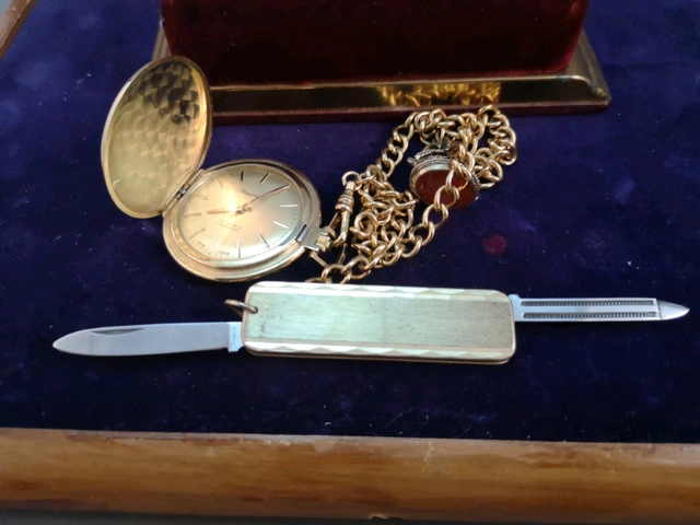 This watch works and all is gold plated including the Solinger knife. Jewellery Type: Watches For Sale By: Owner