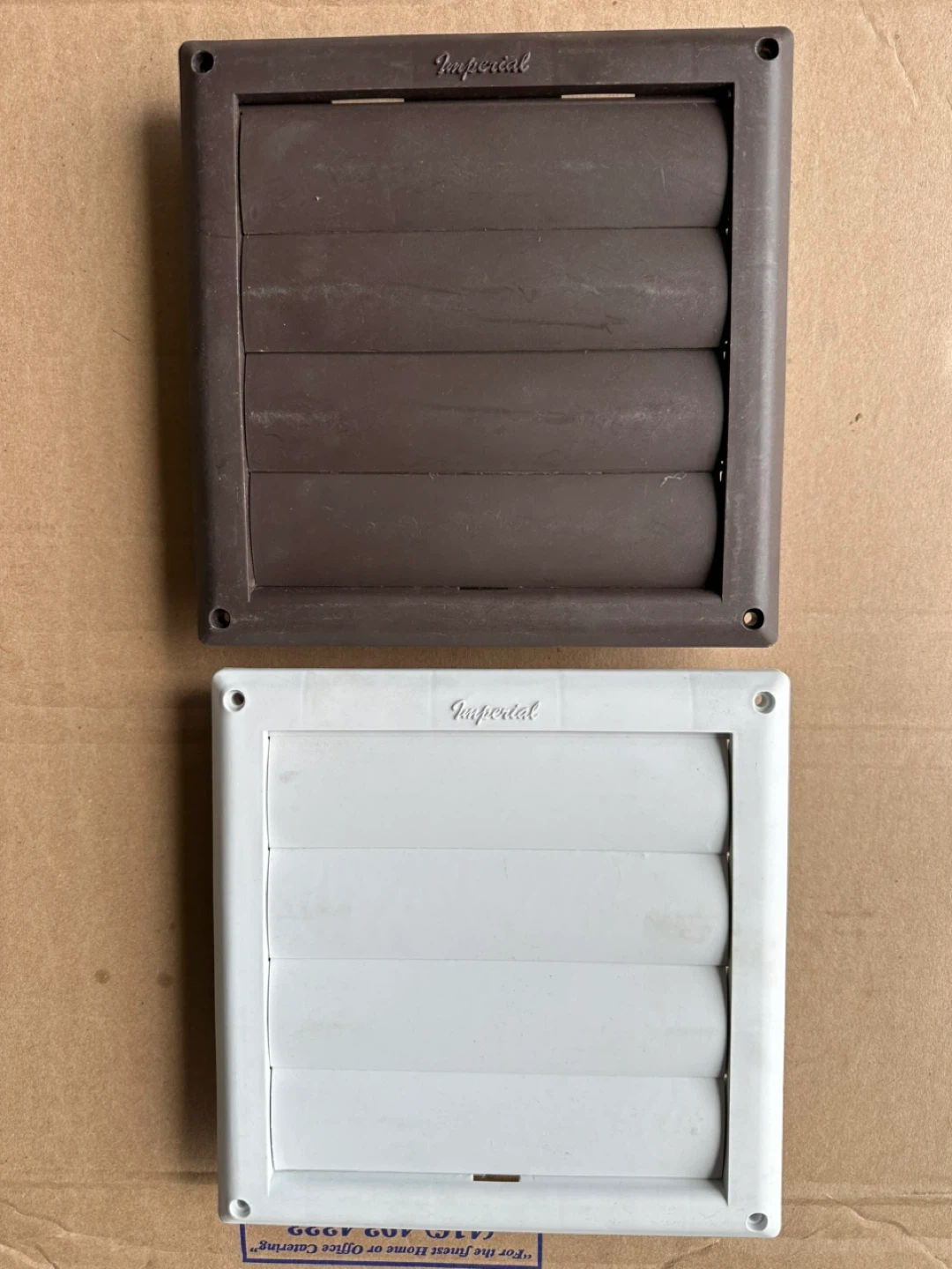83Selling two 5 inch vent covers in good condition. One is brown and the other is white. Both are from Imperial.
