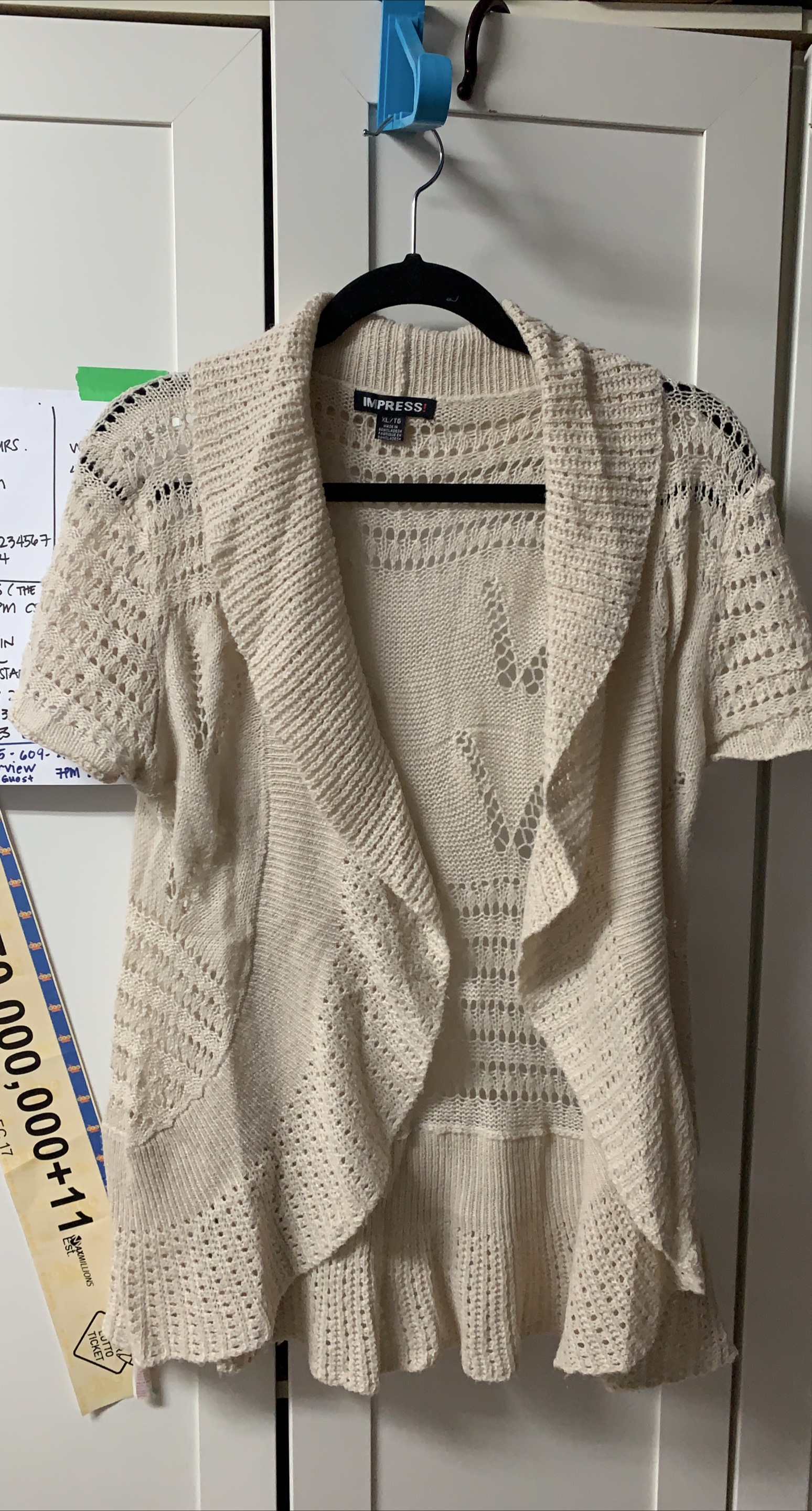 Cozy beige knit cardigan from Impress in size XL. Perfect for layering on cooler days!