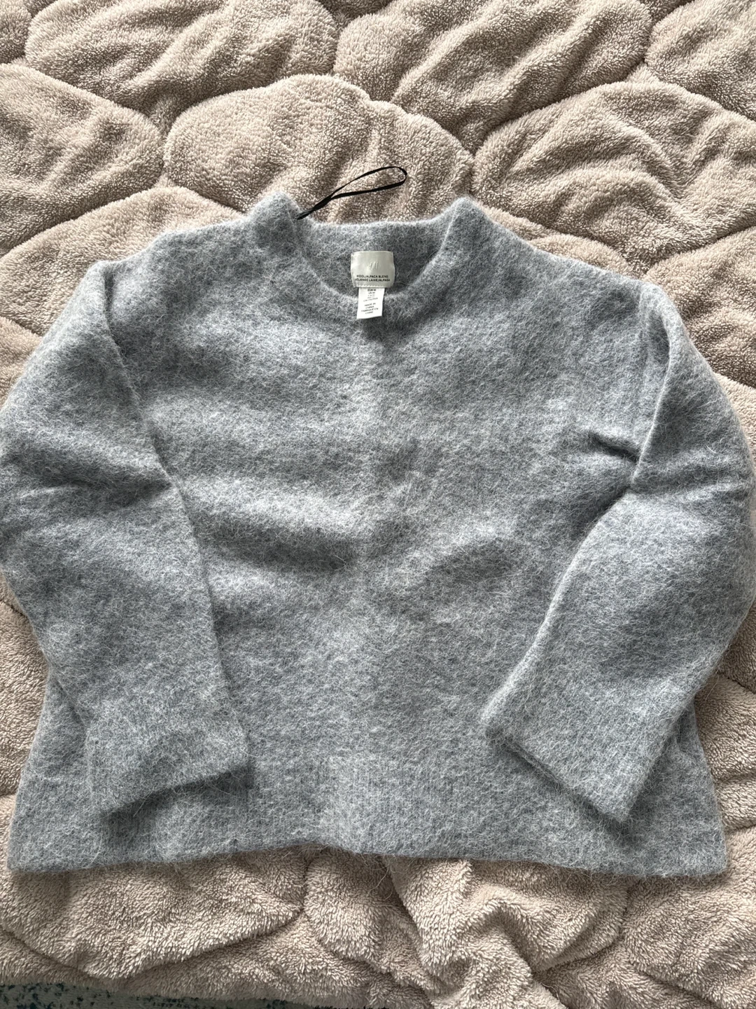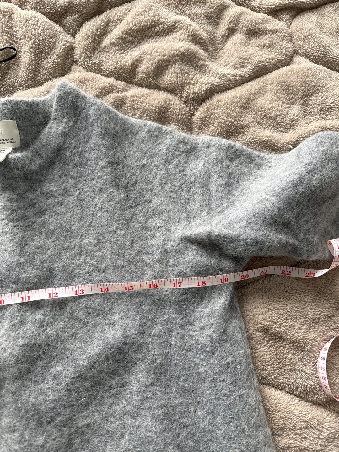 A little shrunk😔 %30 wool %35 alpaca blend sweater, I think the size can be restored if hand washed with hair conditioner. I added the measurements to the pics, probably fits a xs/s now