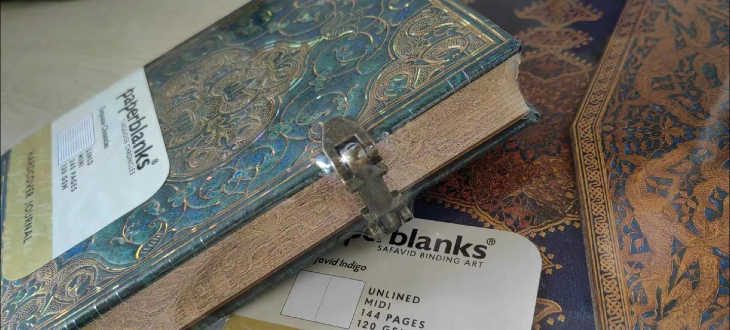 Selling a beautiful Paperblanks journal! It's the Safavid Indigo design, midi size, and unlined. Perfect for writing, sketching, or journaling. The dimensions are 9.5 x 14 cm and it has 144 pages.