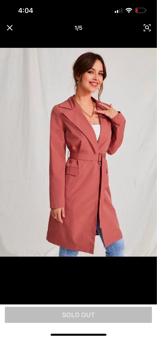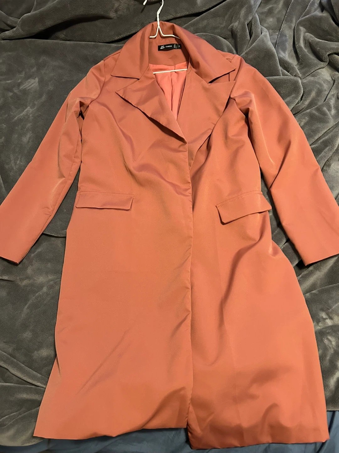 SHEIN x Love and Make long trench coat in a rose pink colour. Size is S. It's a stylish layering piece for your wardrobe!