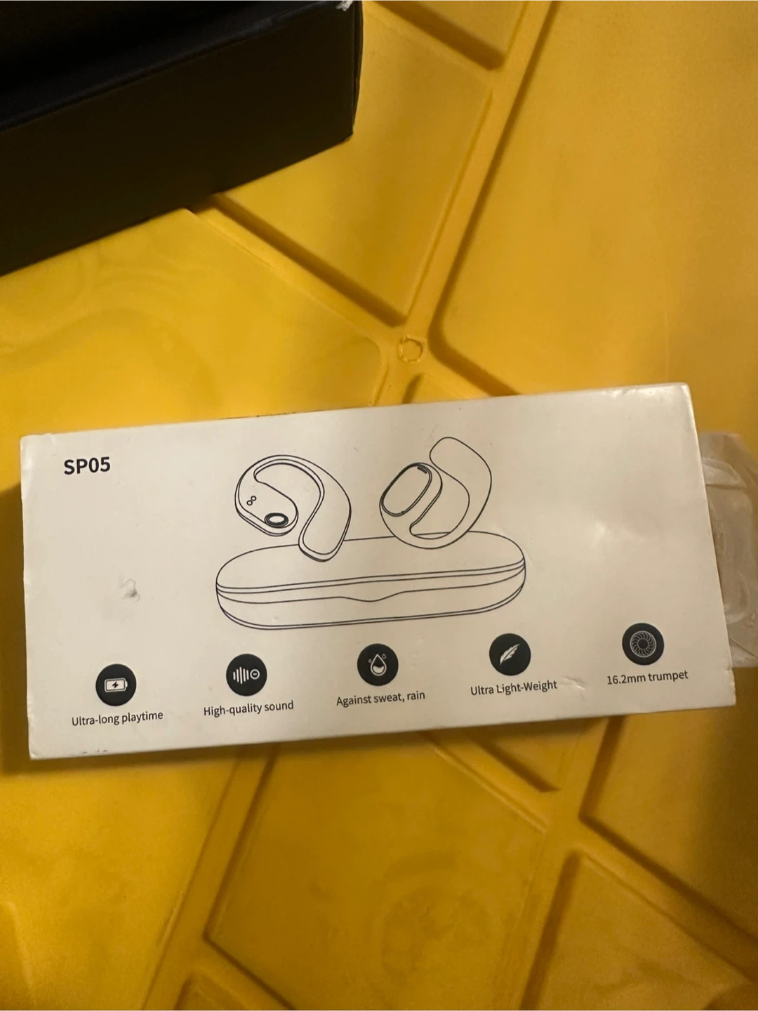 SP05 wireless earbuds come with a charging case, user manual, and charging cable. They offer ultra-long playtime and high-quality sound. These earbuds are designed to be against sweat and rain. The trumpet size is 16.2mm.