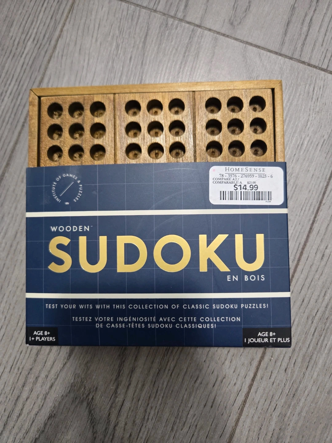 Test your wits with this collection of classic Sudoku puzzles. Includes 81 wooden Sudoku pieces, a wooden game board, instructional challenges, and solutions. Suitable for ages 9+ and 1+ players.