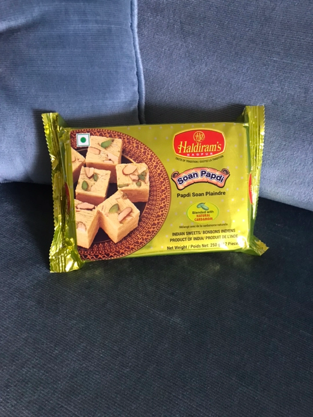 Tasty sweet treat, a perfect snack. Made from Chickpea flour, and sweetened and flavored with Cardamom, Almond & Pistachio. 250g, 12 pieces. ✨NEW - sealed package.