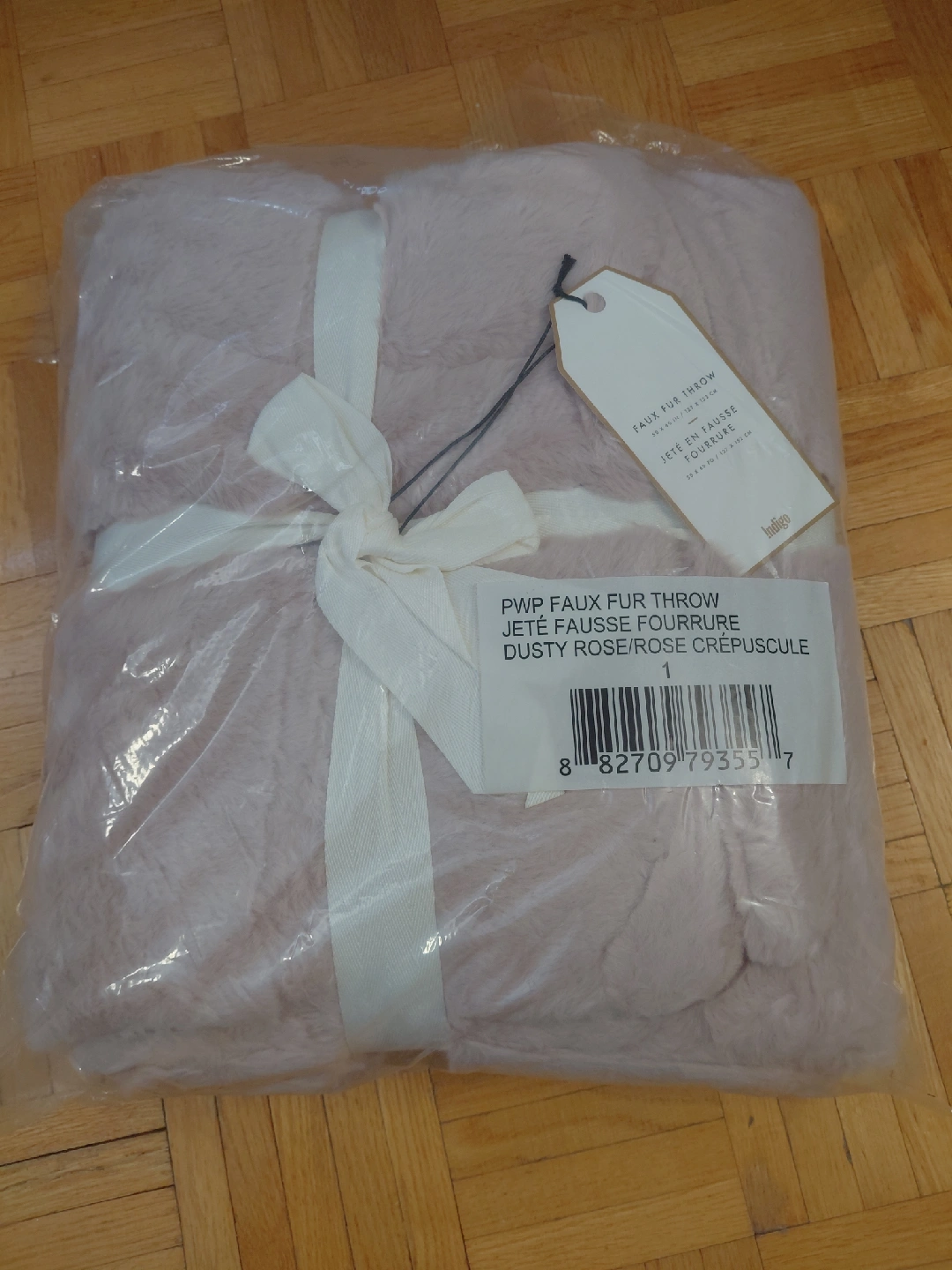 311Selling a Indigo faux fur throw in a beautiful dusty rose colour! This cozy throw measures 50 x 60 inches (127 x 152 cm). Never used and still in its original packaging.