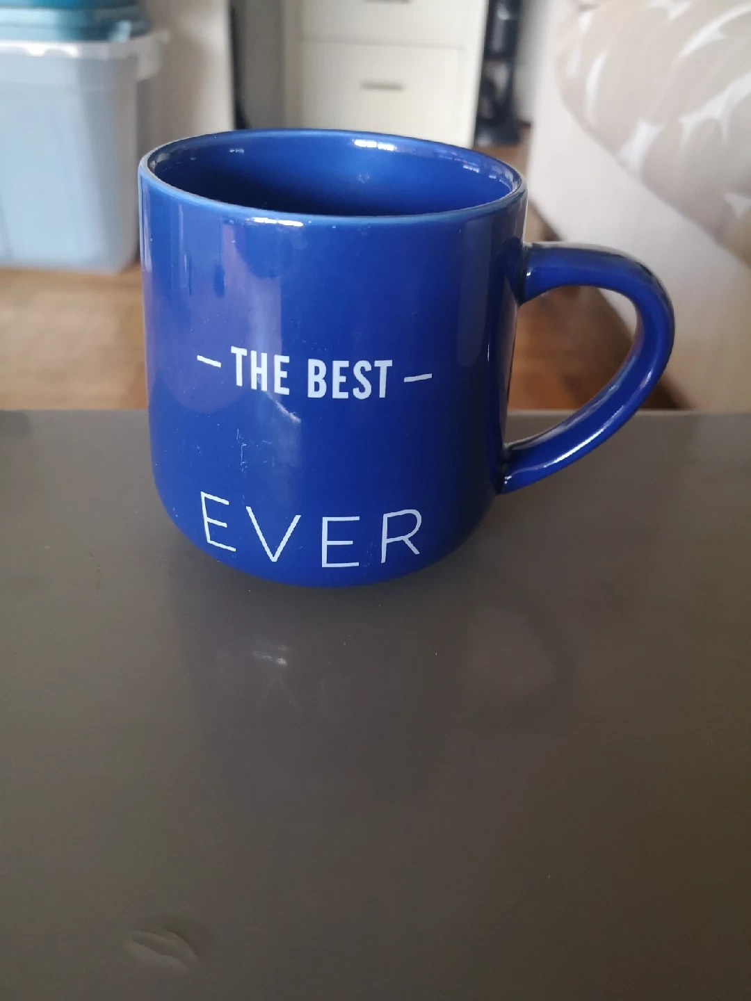 30Selling a cute blue mug from Indigo! It says 'The Best Ever' on it in white lettering. It's dishwasher and microwave safe too
