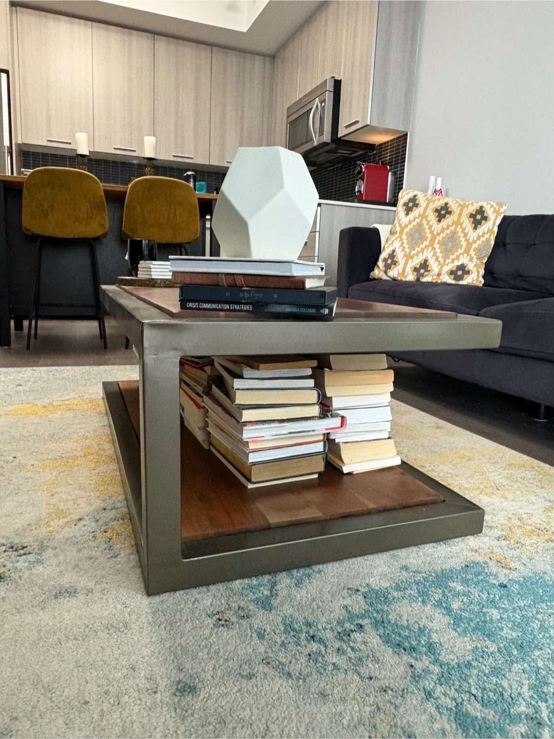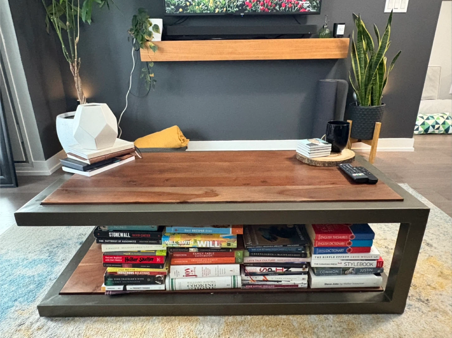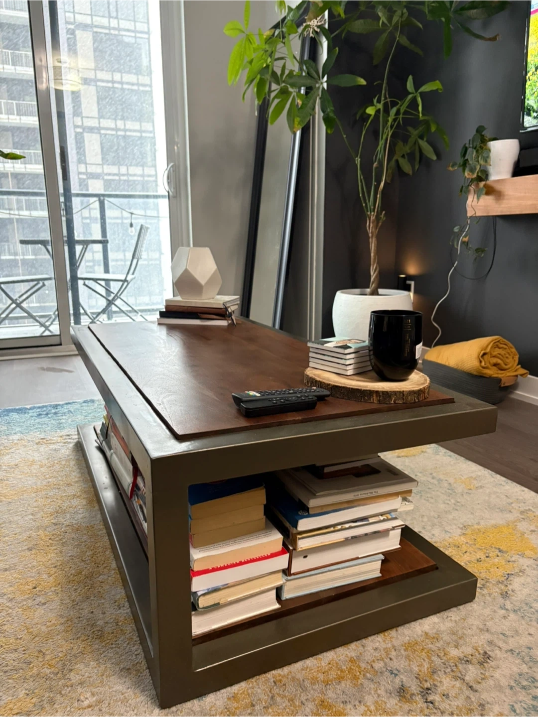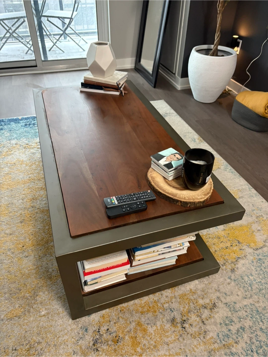 65Add a touch of industrial charm to your living space with this stylish and functional coffee table. The sturdy design features a solid wood top paired with a sleek, metal frame for a modern yet rustic look.