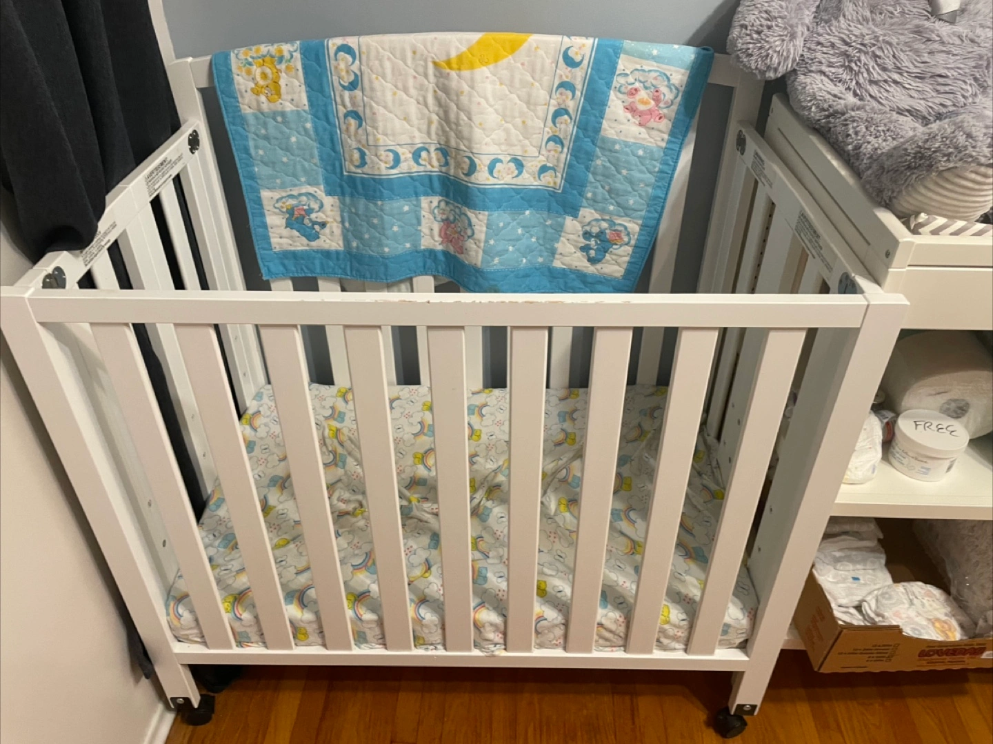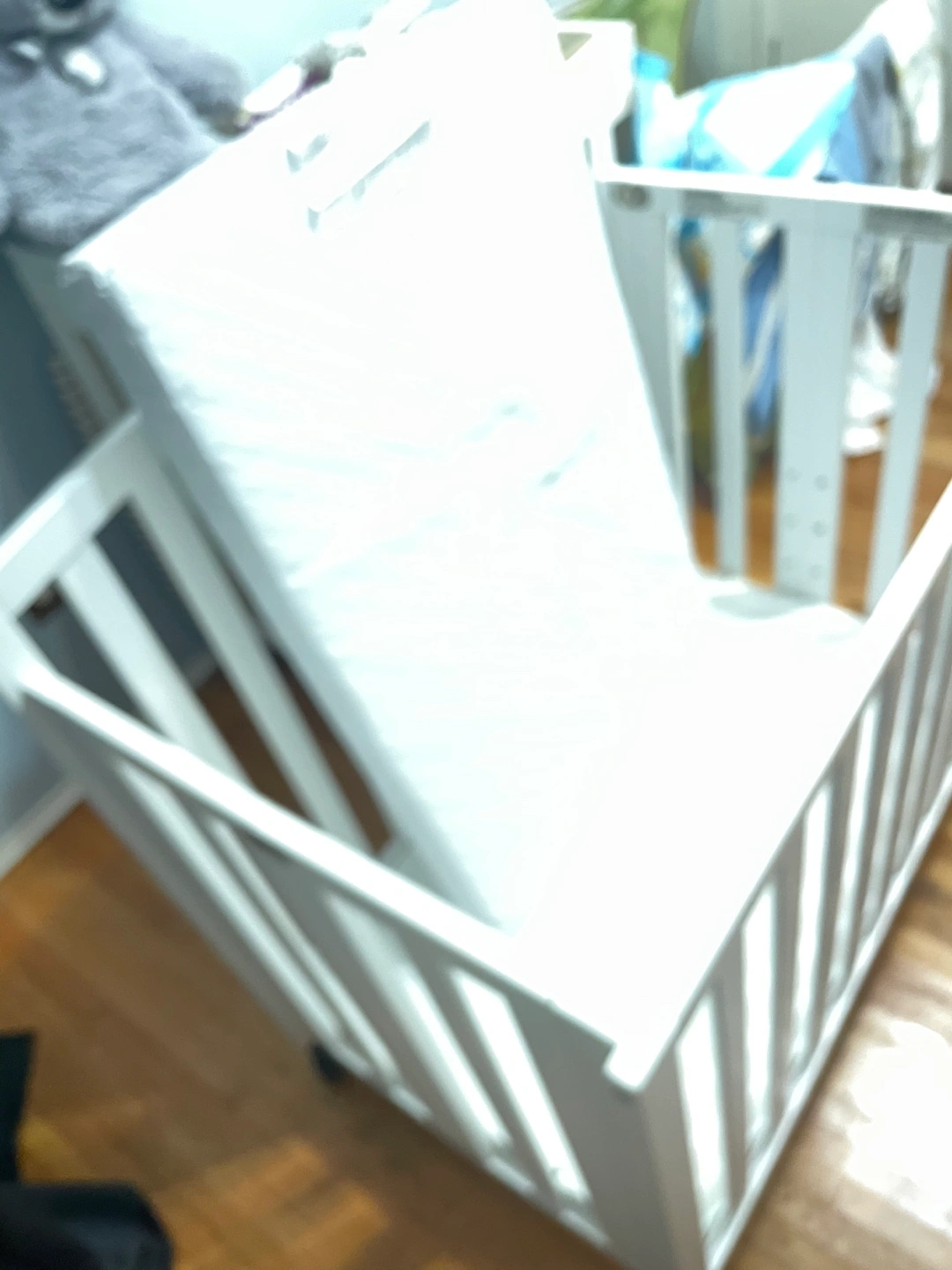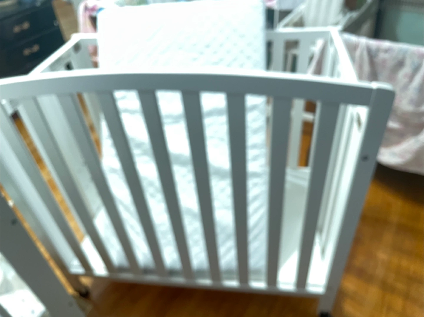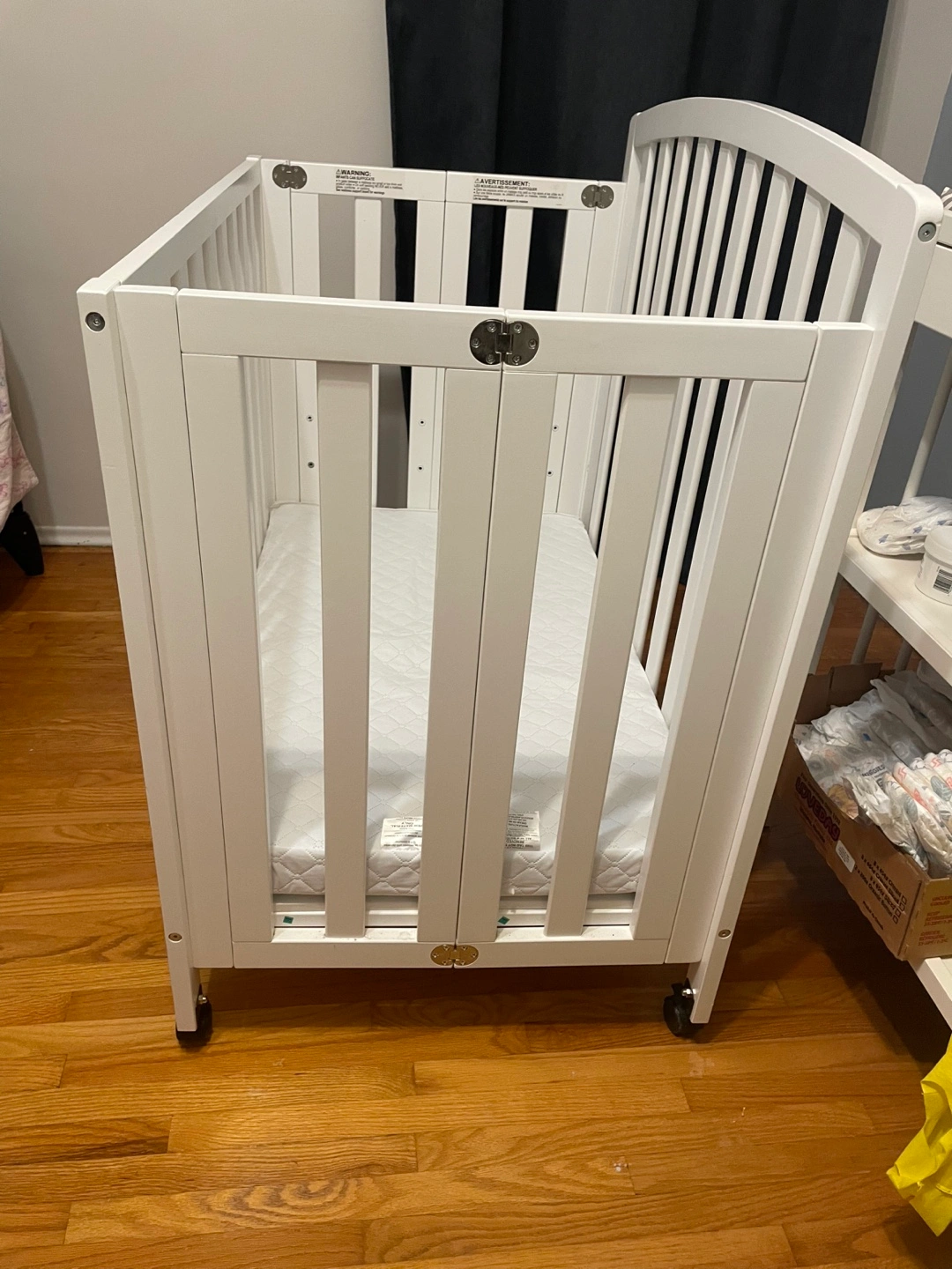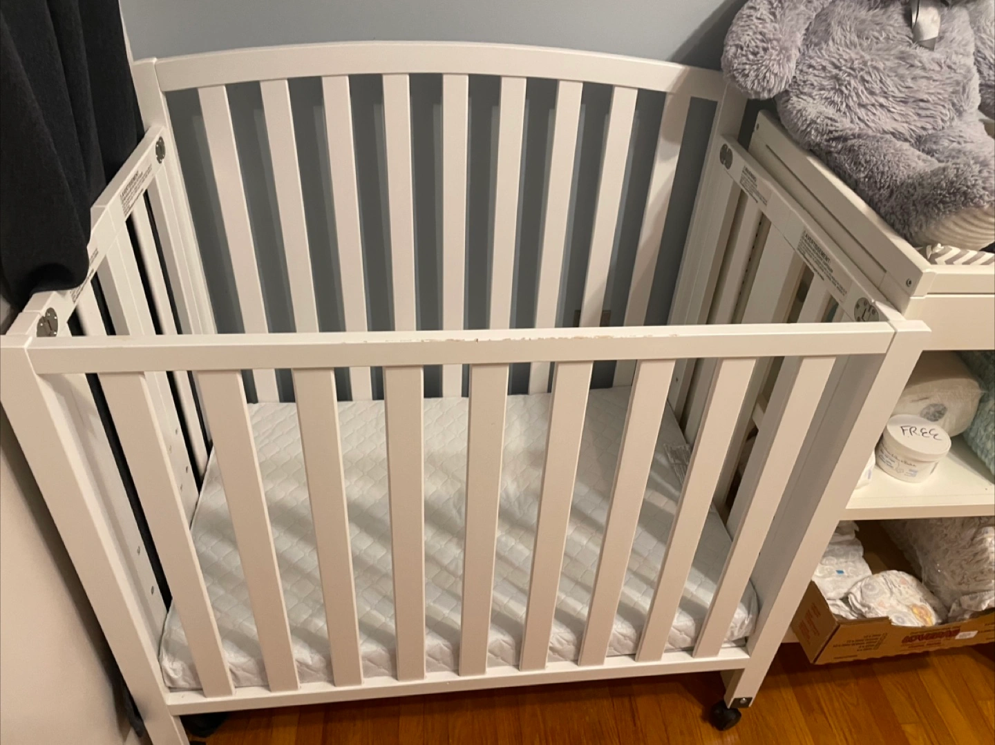 Infant Crib with mattress Gently used, a few paint spots could be touched up, otherwise all the hardware, mattress and the apparatus are all intact. Comes with wheels, which roll nicely. Listed at $80 Pick up is on Dunrobin Ave in East Kildonan. Exact cash only. No delivery possible. No e-transfer possible.