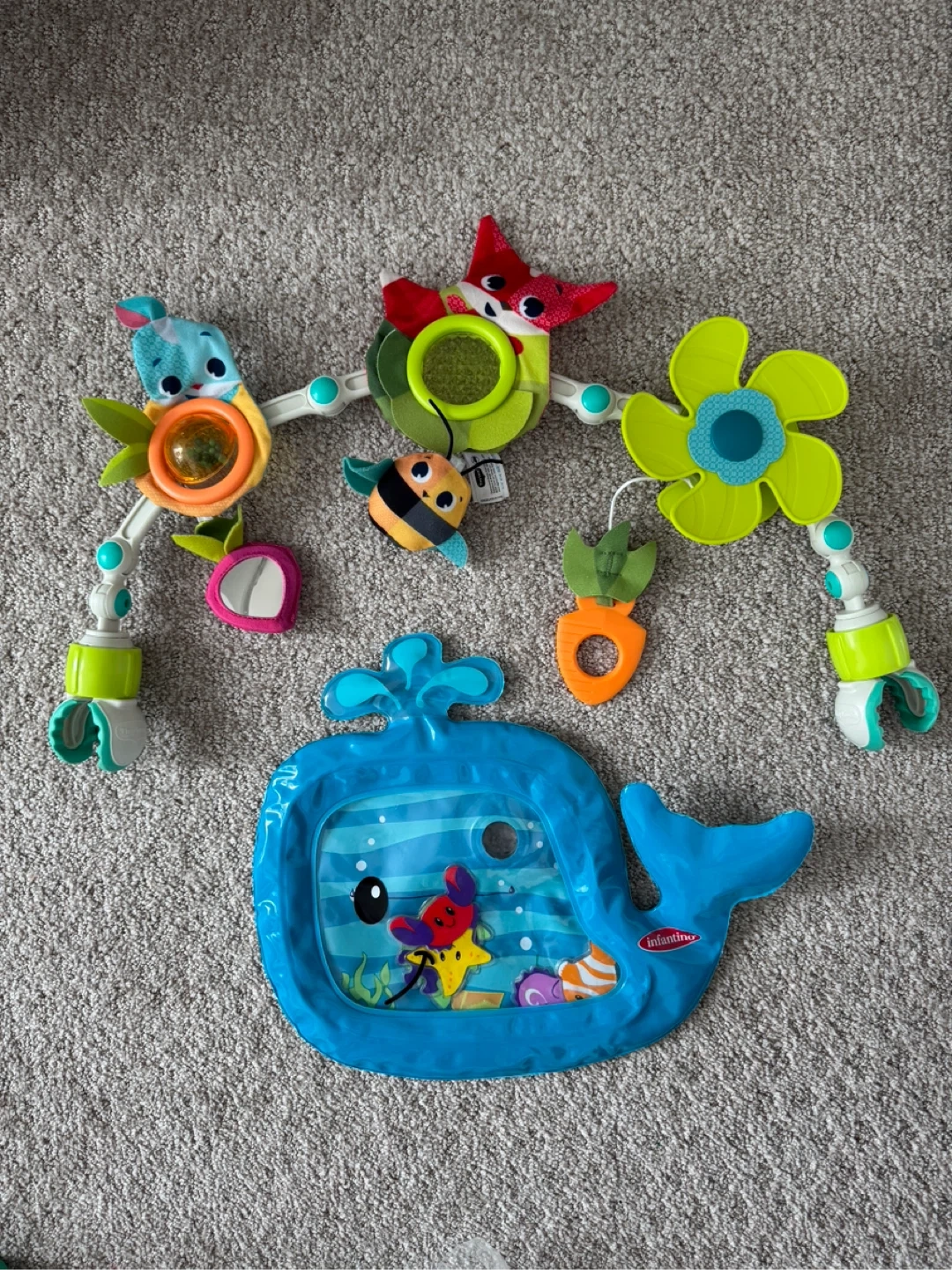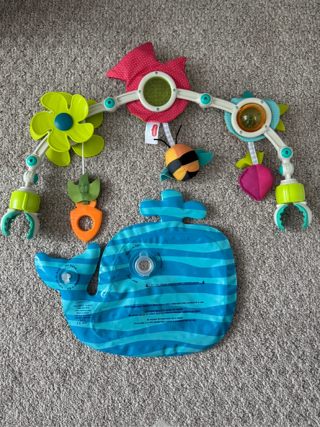 158Selling a gently used Infantino activity arch and water mat. The arch features colourful toys and textures to stimulate your baby's senses. Suitable for bassinet, strollers, swings, car seats. The water mat is shaped like a whale and provides a fun tummy time experience for your little one. It's a great set to keep your baby entertained and help with their development!